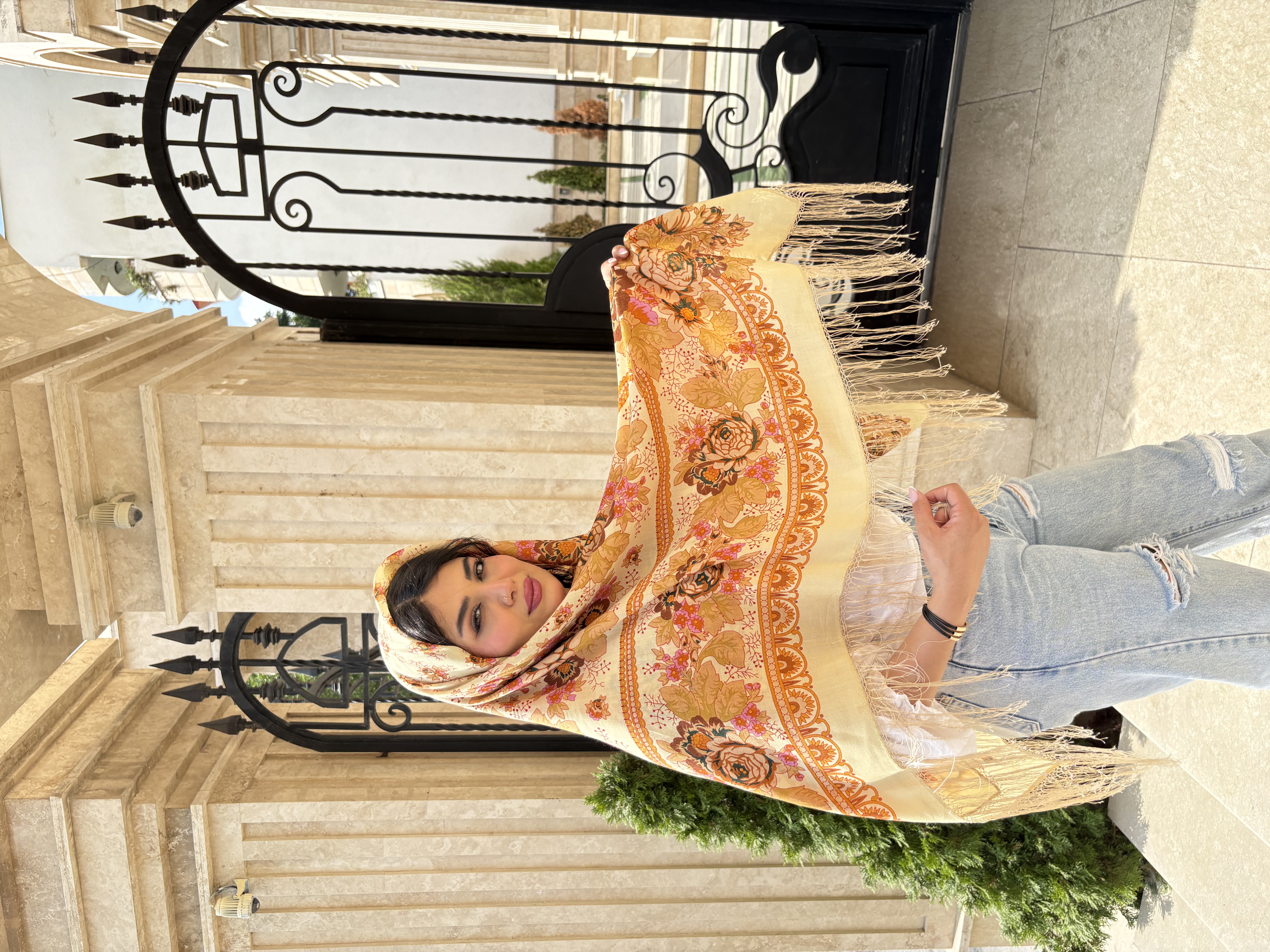 چارقد ایتالیایی زمینه روشن (گول یاپراق) ـــ کد ۱۳۷۶