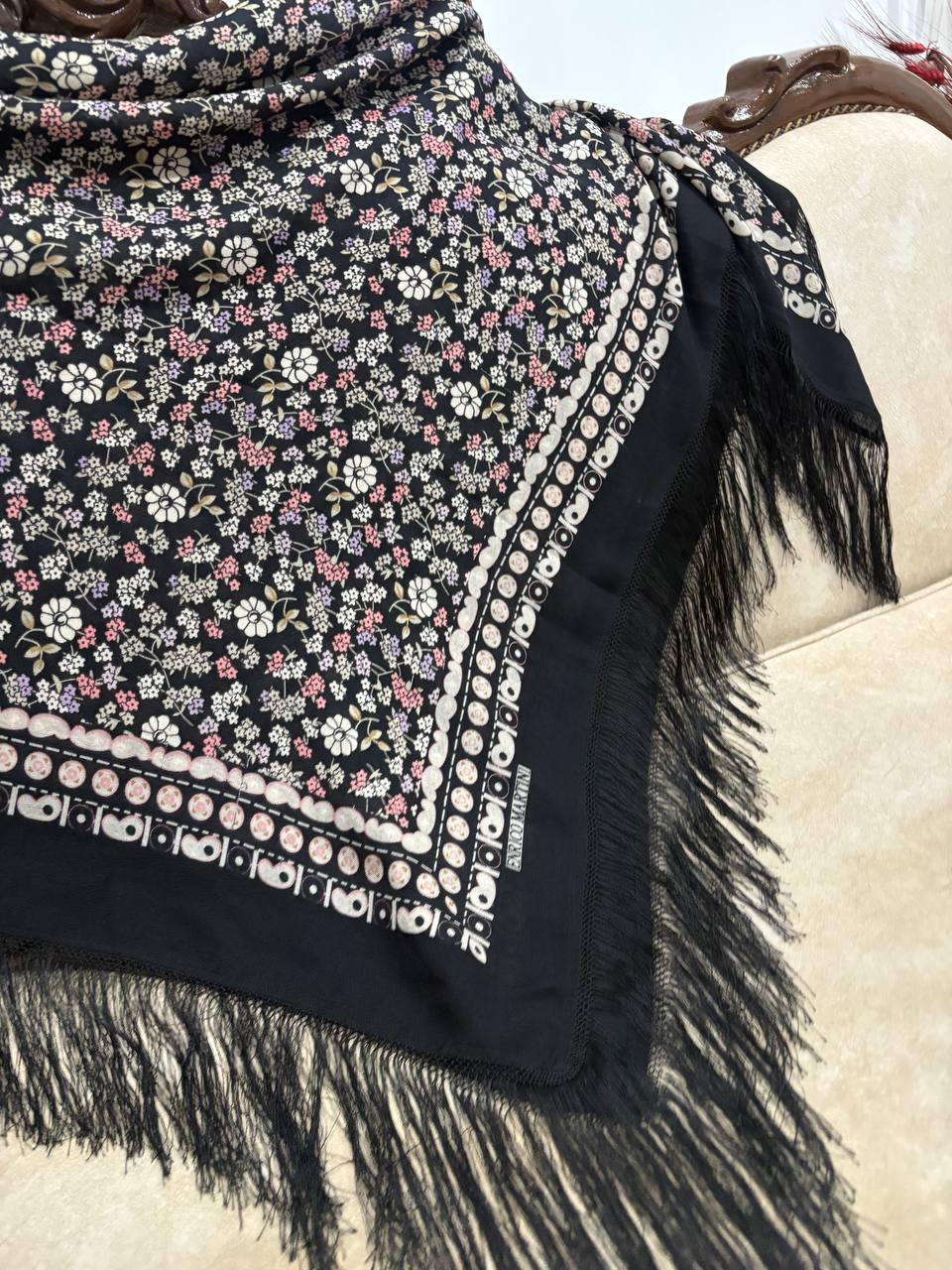 نوع: چارقد ایتالیایی جنس: ابریشم مصنوعی مرغوب طرح: گلریز کلاسیک رنگ زمینه: مشکی ترکیب رنگ: کرم، صورتی ملایم و سفید حاشیه: مشکی ریشهدار ظریف ابعاد: قواره بزرگ: .
