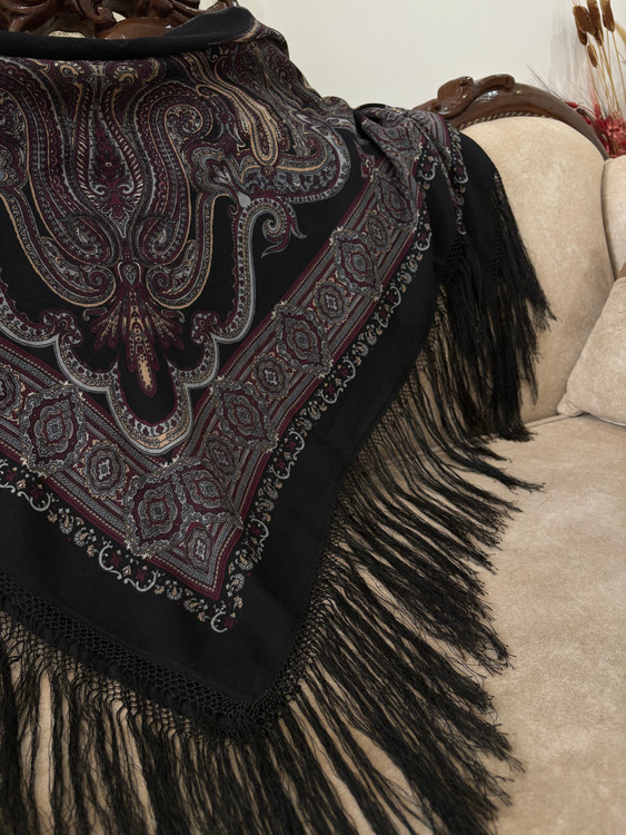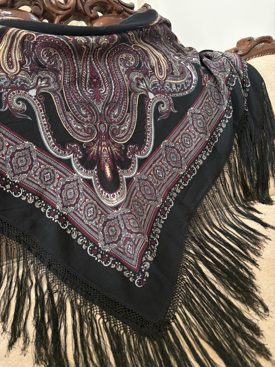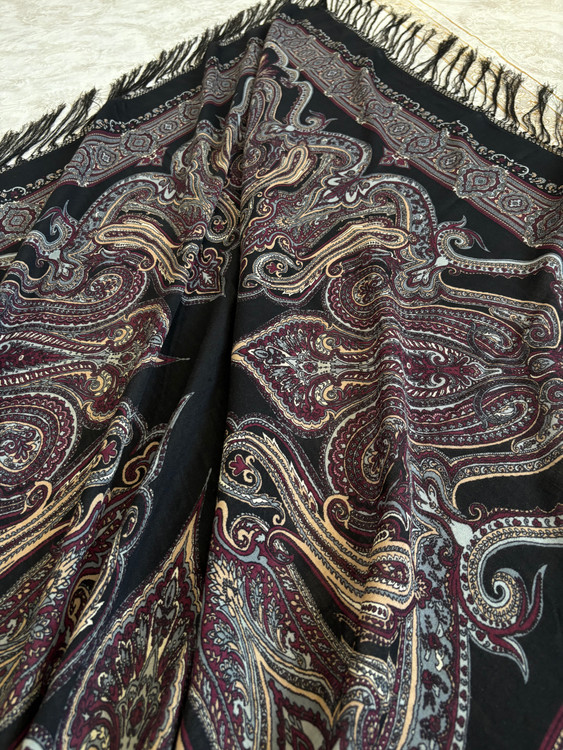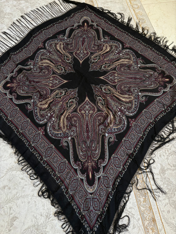 چارقد ایتالیایی زمینه مشکی کمیاب، جنس پشم ابریشم نازک چهارفصل