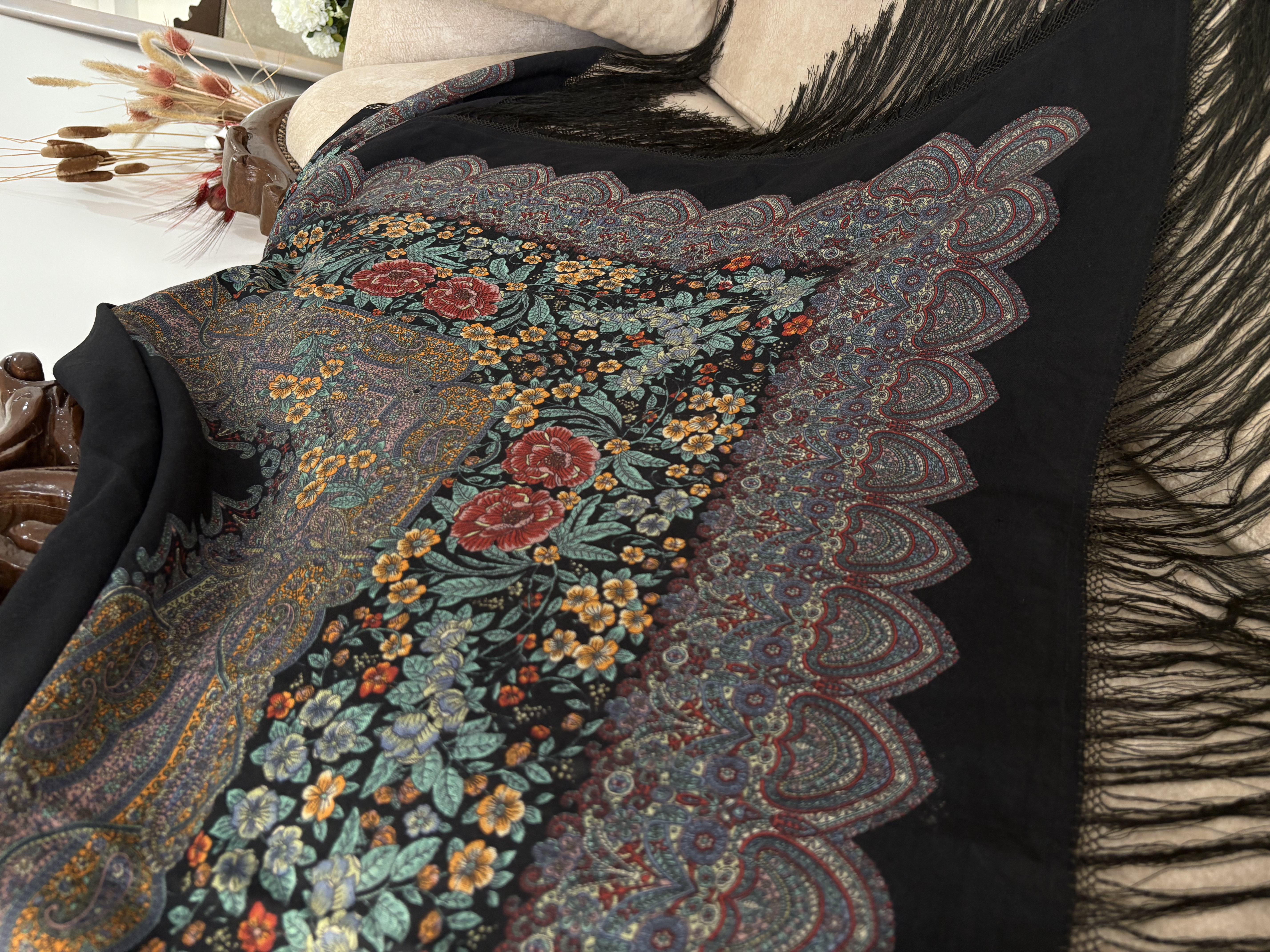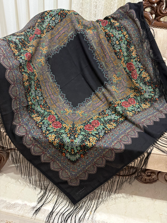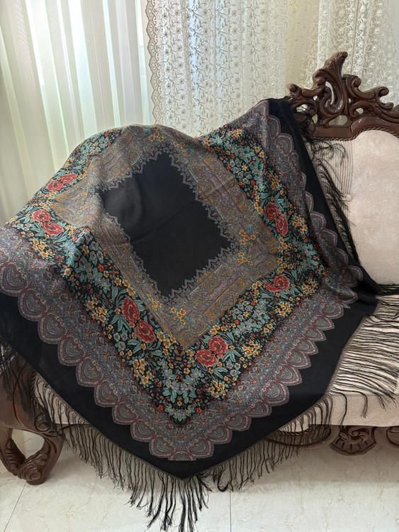 چارقد ایتالیایی با طرح اصیل بتهجقه و ترکیب رنگ گرم انتخابی اصیل و چشمنواز برای استایلهای کلاسیک و مجلسی. حاشیه ریشهدار و چاپ دقیق، جلوهای لوکس و خاص به این چارقد داده است