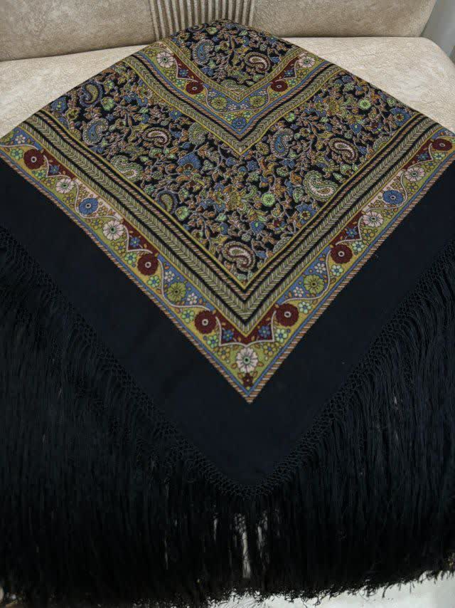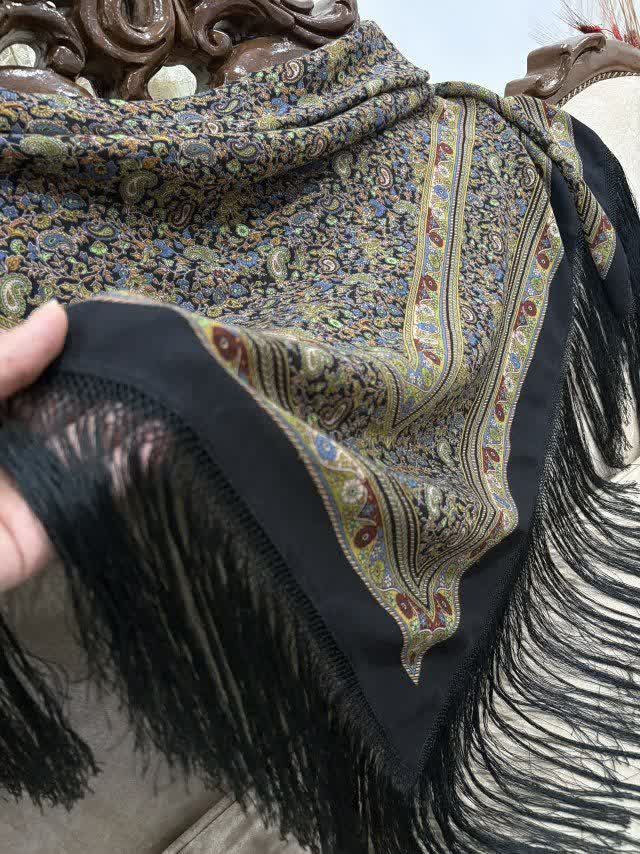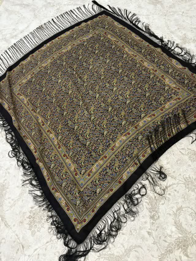 چارقد ایتالیایی با طرح ریزی ترمه و ترکیب انتخابی ظریف و چشمنواز برای استایلهای کلاسیک و مجلسی. حاشیه ریشهدار و چاپ دقیق، جلوهای لوکس و خاص به این چارقد داده است