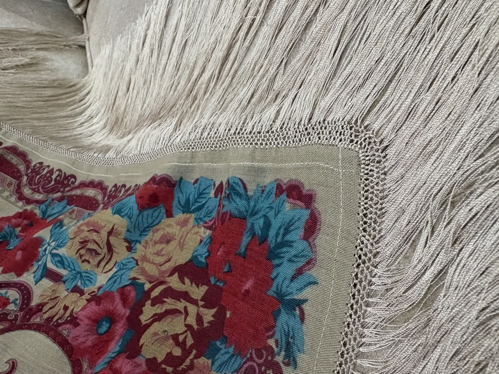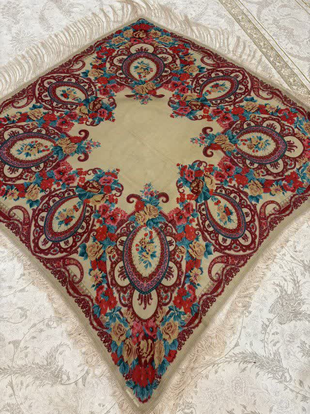 چارقد ایتالیایی با طرح اصیل بتهجقه و ترکیب رنگ نسکافه ای با ریشه های پر پشت انتخابی ظریف و چشمنواز برای استایلهای کلاسیک و مجلسی. حاشیه ریشهدار و چاپ دقیق، جلوهای لوکس و خاص به این چارقد داده است✨
