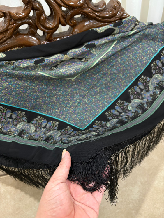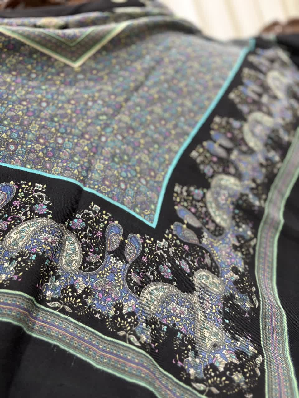 چارقد ترک ایتالیایی با ترکیب چشمنواز رنگهای تیره و نقوش گلدار اصیل ترکمنی، جلوهای فاخر و خاص به استایل شما میبخشد. بافت لطیف، طرح پرجزئیات و ریشهدوزی ظریف، این چارقد را به انتخابی ایدهآل برای بانوان خوشسلیقه تبدیل کرده است.