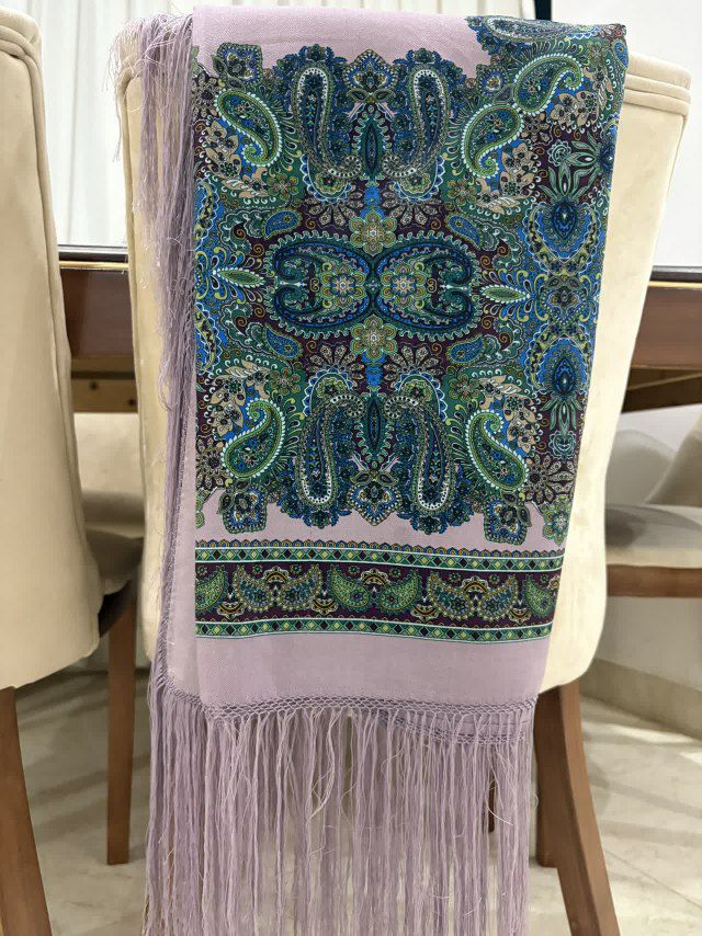 چارقد ایتالیایی با ترکیب چشمنواز رنگ بنفش یاسی ملایم و نقوش گلدار اصیل ترکمنی، جلوهای فاخر و خاص به استایل شما میبخشد. بافت لطیف، طرح پرجزئیات و ریشهدوزی ظریف، این چارقد را به انتخابی ایدهآل برای بانوان خوشسلیقه تبدیل کرده است💜