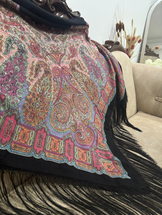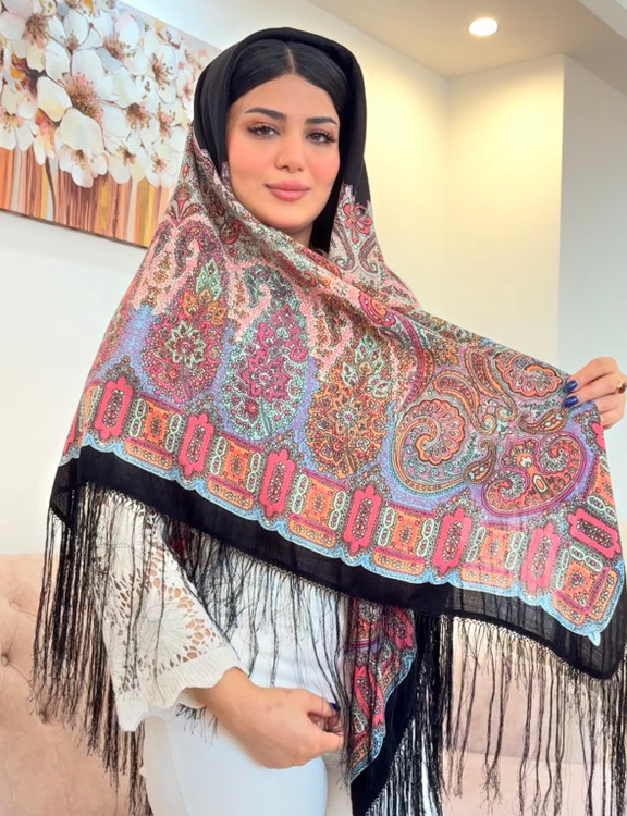 چارقدی که با رنگهای خاصش بین چارقدهای ایتالیایی تک و بی نظیر، جنس لطیف و سبکی داره، رنگها به صورت جلوه ی بی نظیری میدن.
