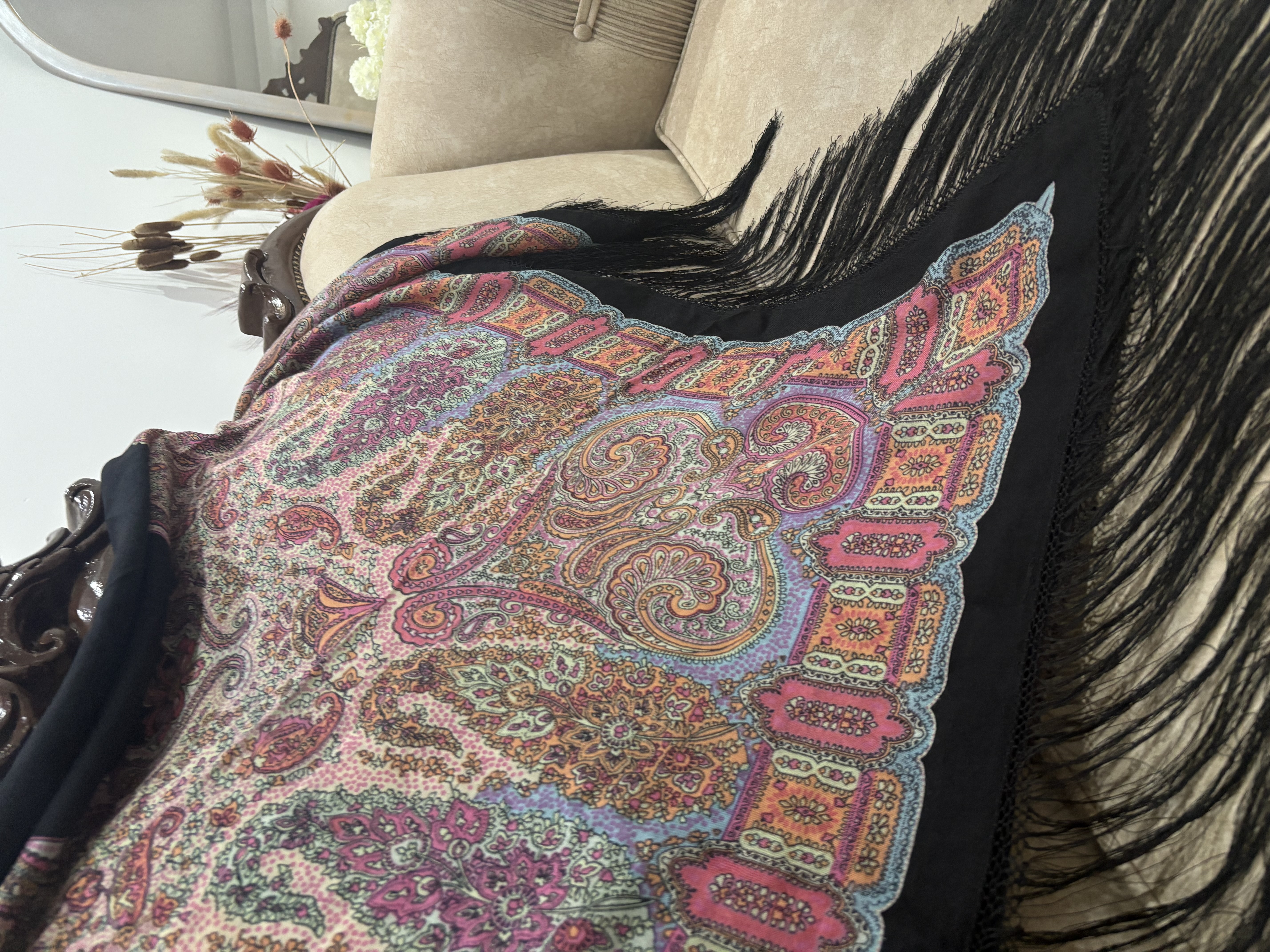 چارقدی که با رنگهای خاصش بین چارقدهای ایتالیایی تک و بی نظیر، جنس لطیف و سبکی داره، رنگها به صورت جلوه ی بی نظیری میدن.