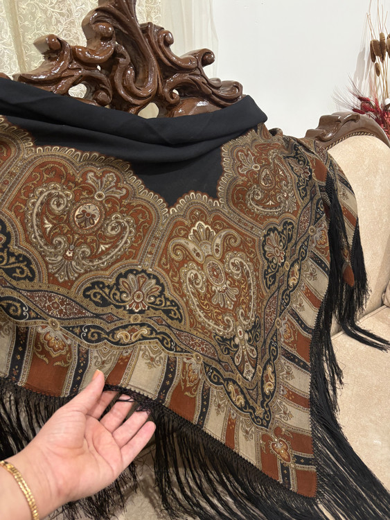 زیباترین چارقد قهوه ای شکلاتی دنیا متعلق به این چارقد اصیل بی نظیر و زیباست .