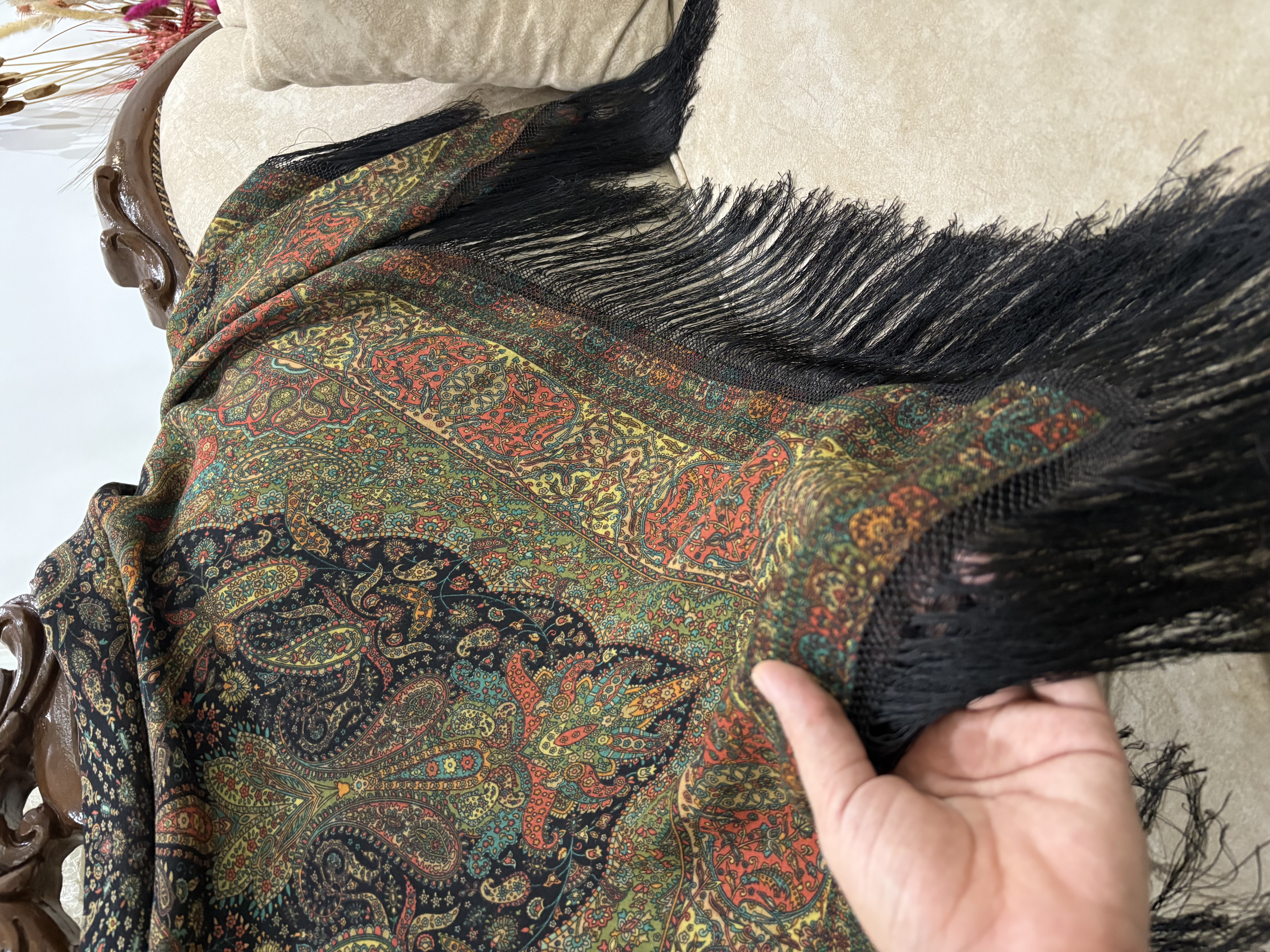 دستهبندی: چارقد ایتالیاییبرچسبها : روسری پشم و ابریشم ترکمنیایستایی: عالی جنس: پارچه ایتالیایی لطیف ریزش دار: زیبا و منظم شستشو: دستی با آب سرد اتوکشی: با حرارت ملایم از پشت مناسب استفاده روزمره و مجلسی سایز: ۱۴۵: 1