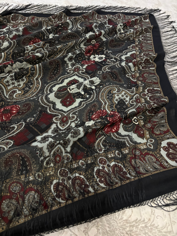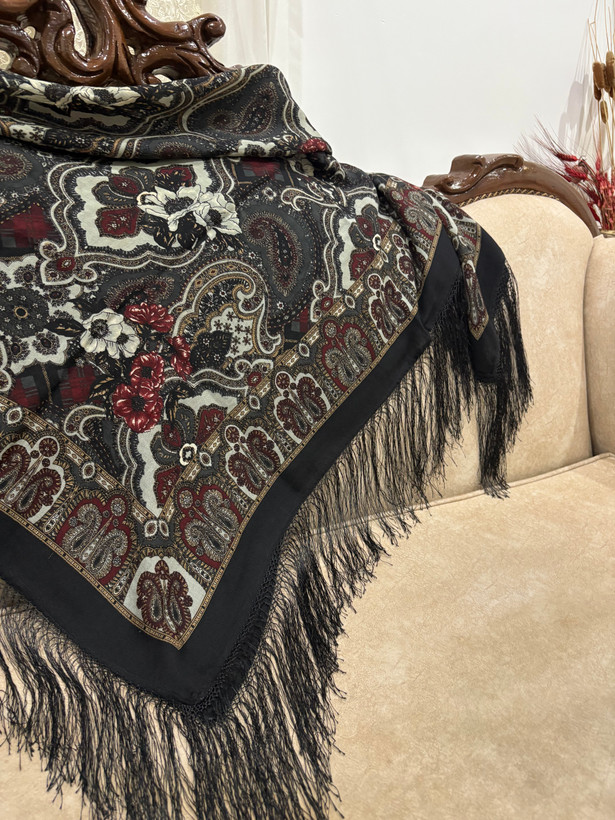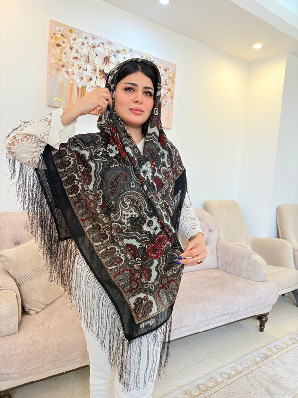 چارقد خوش نقش و نگار اصیل ترکمن با جنس بی نظیر ایتالیایی.