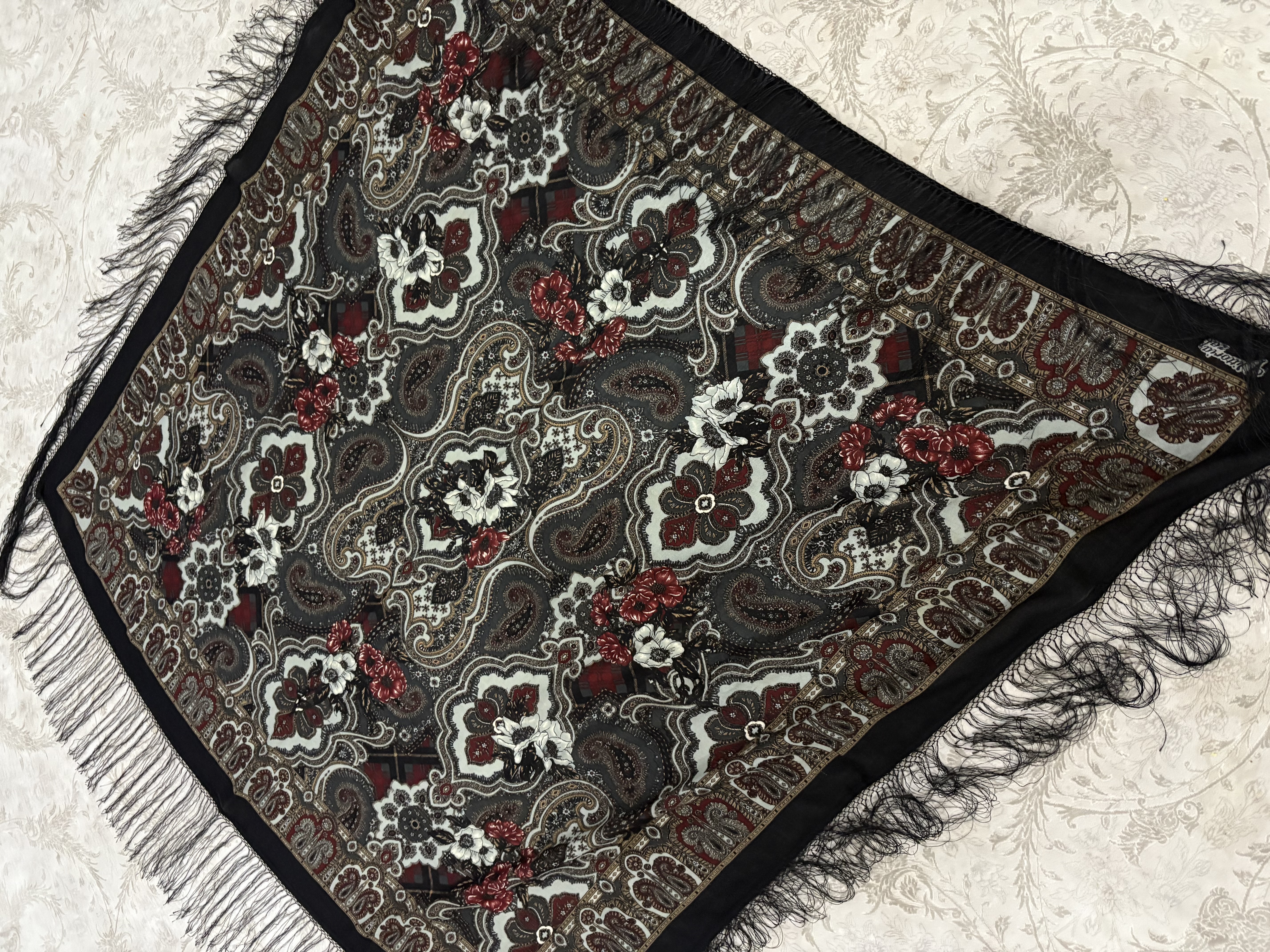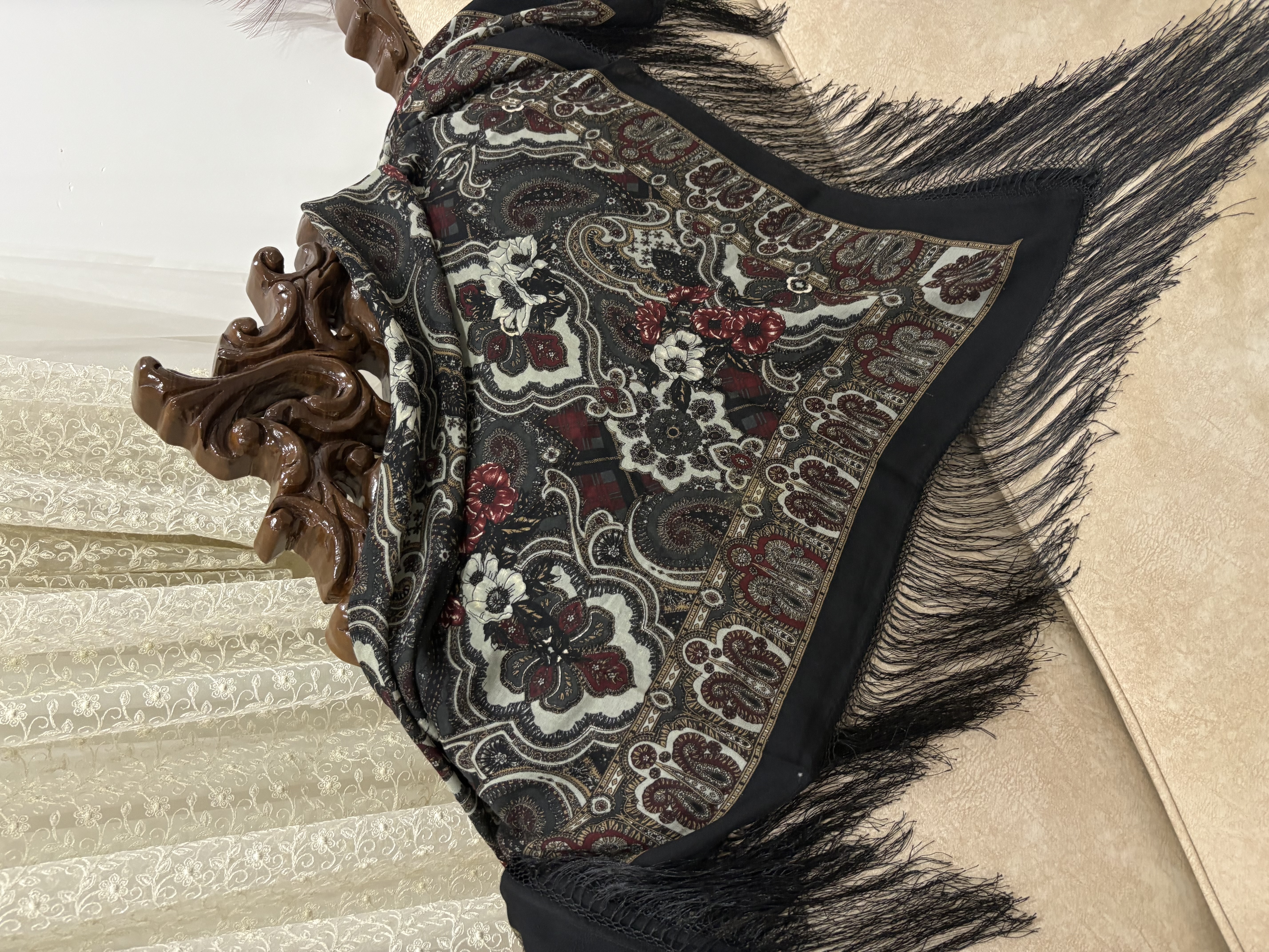 چارقد خوش نقش و نگار اصیل ترکمن با جنس بی نظیر ایتالیایی.