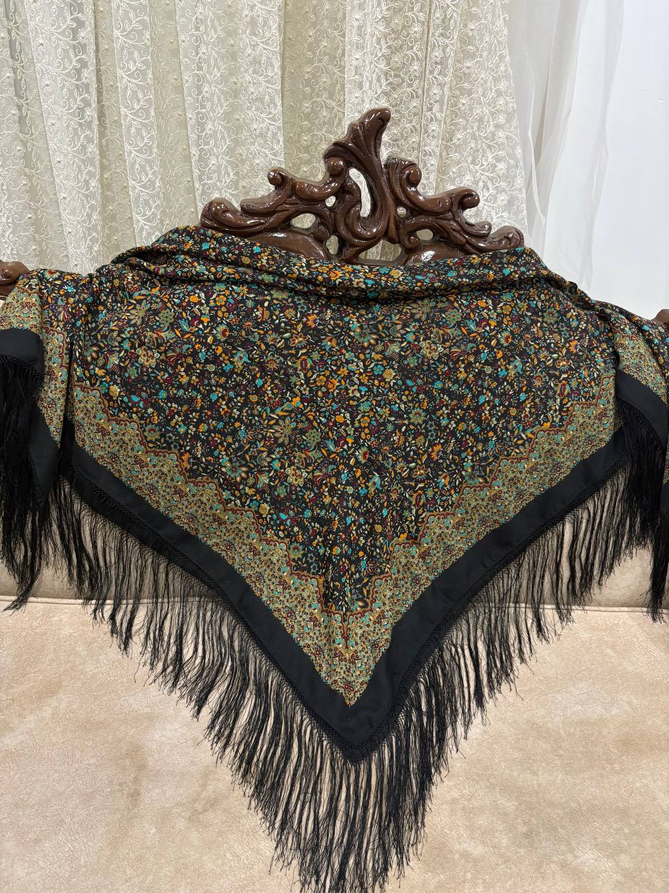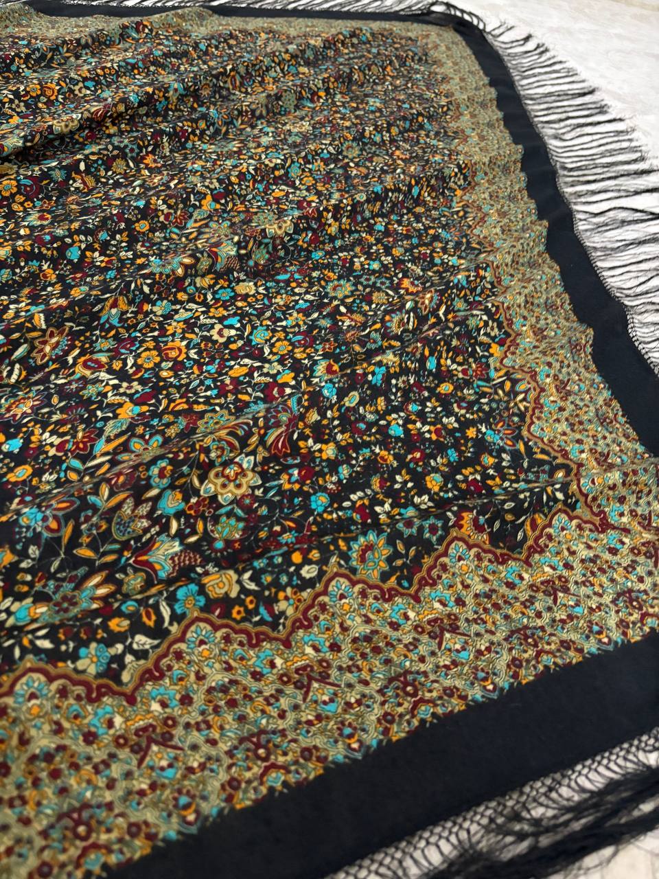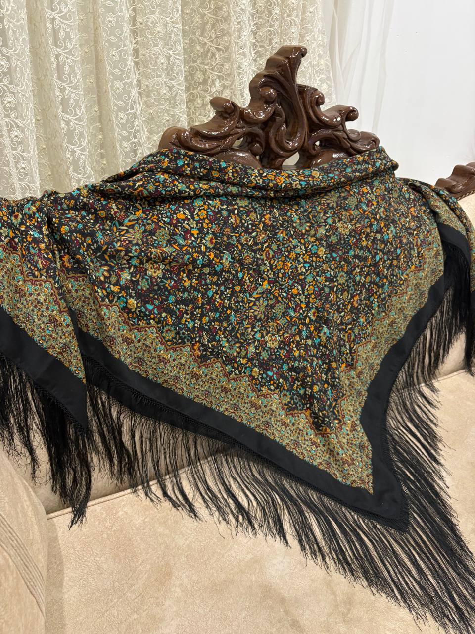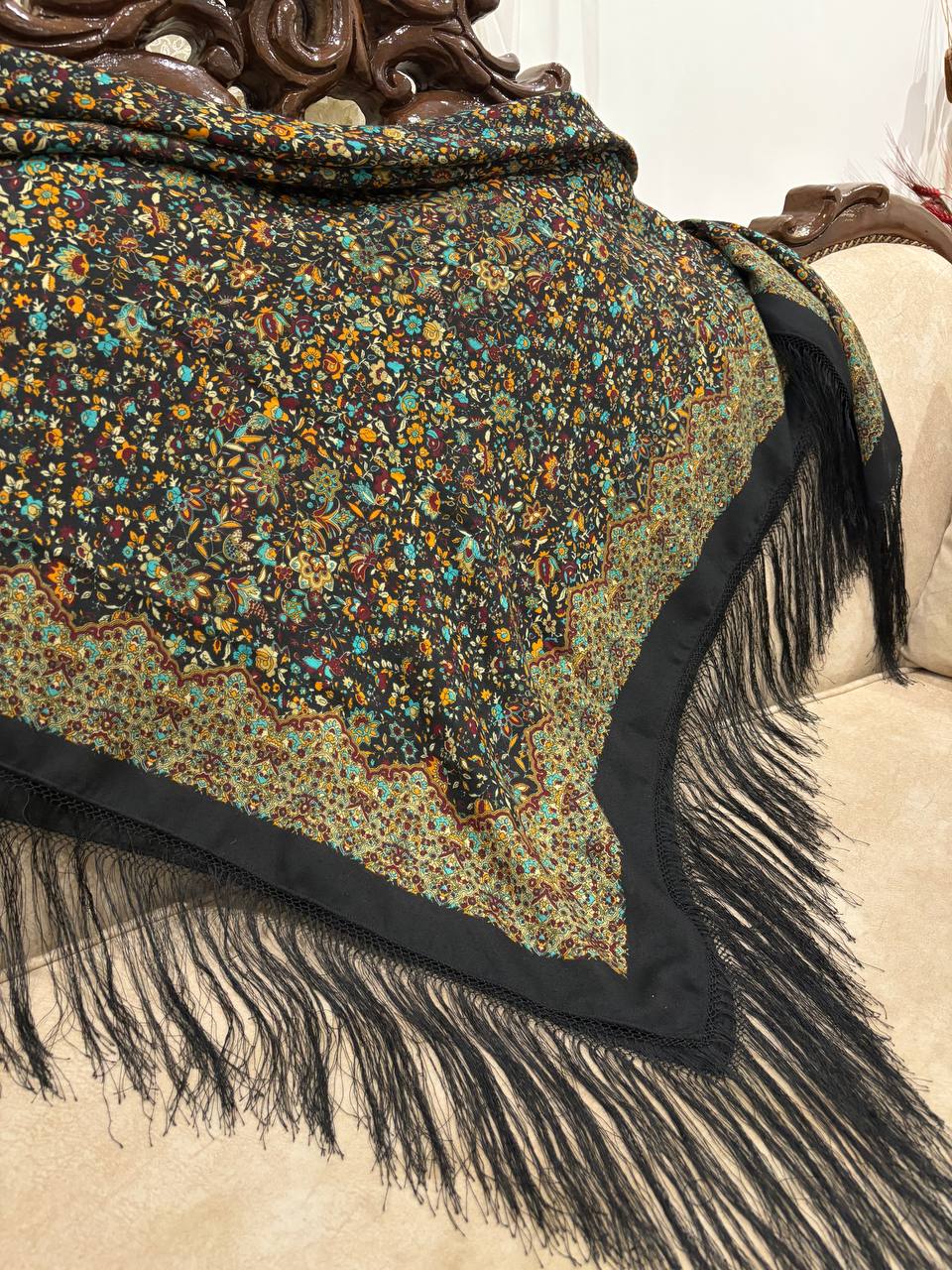 چارقد نخ ترک خاص با ترکیب چشمنواز رنگهای تیره و نقوش گلدار اصیل ترکمنی، جلوهای فاخر و خاص به استایل شما میبخشد. بافت لطیف، طرح پرجزئیات و ریشهدوزی ظریف، این چارقد را به انتخابی ایدهآل برای بانوان خوشسلیقه تبدیل کرده است