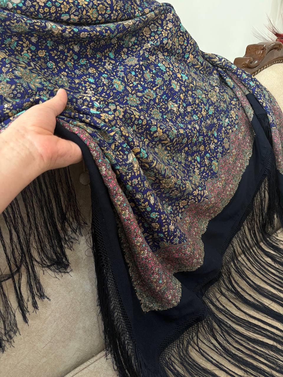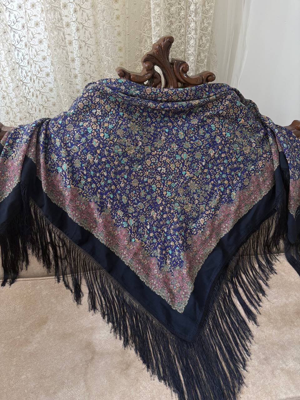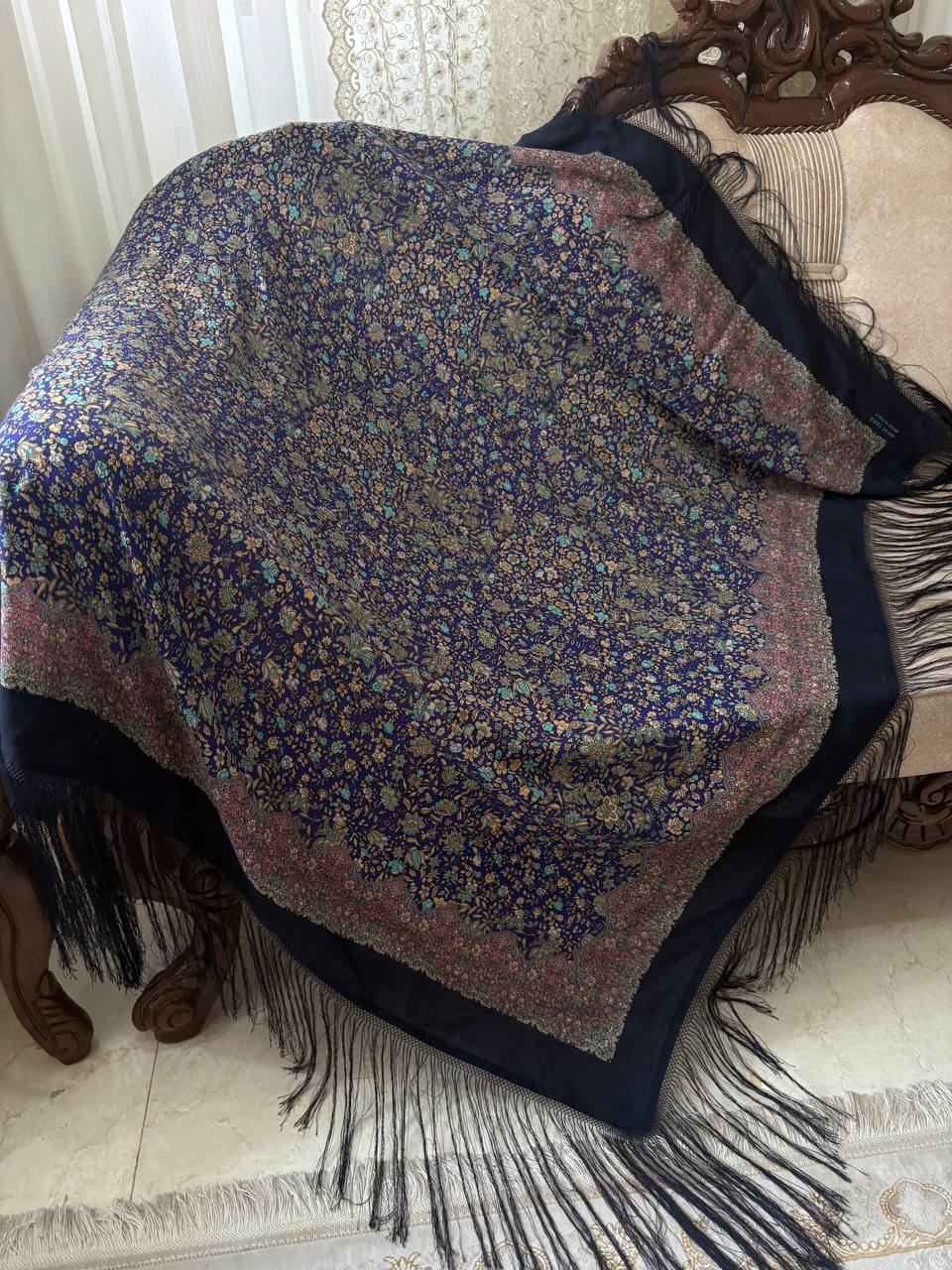 📏 ابعاد: بزرگ (معمولاً ۱۴۰×۱۴۰ سانتیمتر) 🧵 جنس: پارچه لوکس و لطیف (نخ/ابریشم یا مشابه) 🎨 طرح: گل اسفندی شیک و برجسته 💫 ویژگی: ایستایی خوب، رنگهای زنده 👗 کاربرد: مناسب مجالس و استایل مجلسی/روزمره خاص 🧼 نگهداری: قابل شستوشوی ملایم: ۱