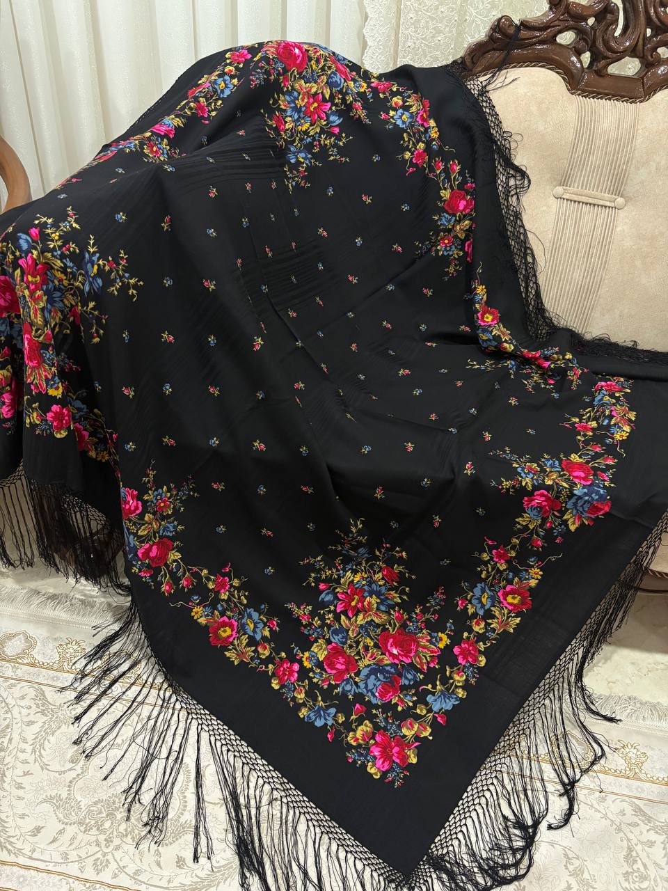 چارقد پشمی ترکمن؛ ترکیب اصالت و گرمای واقعی. بافت نرم از پشم طبیعی و نقشهای الهامگرفته از هنر ترکمن، انتخابی خاص برای استایلی سنتی و چشمنواز در روزهای سرد🖤
