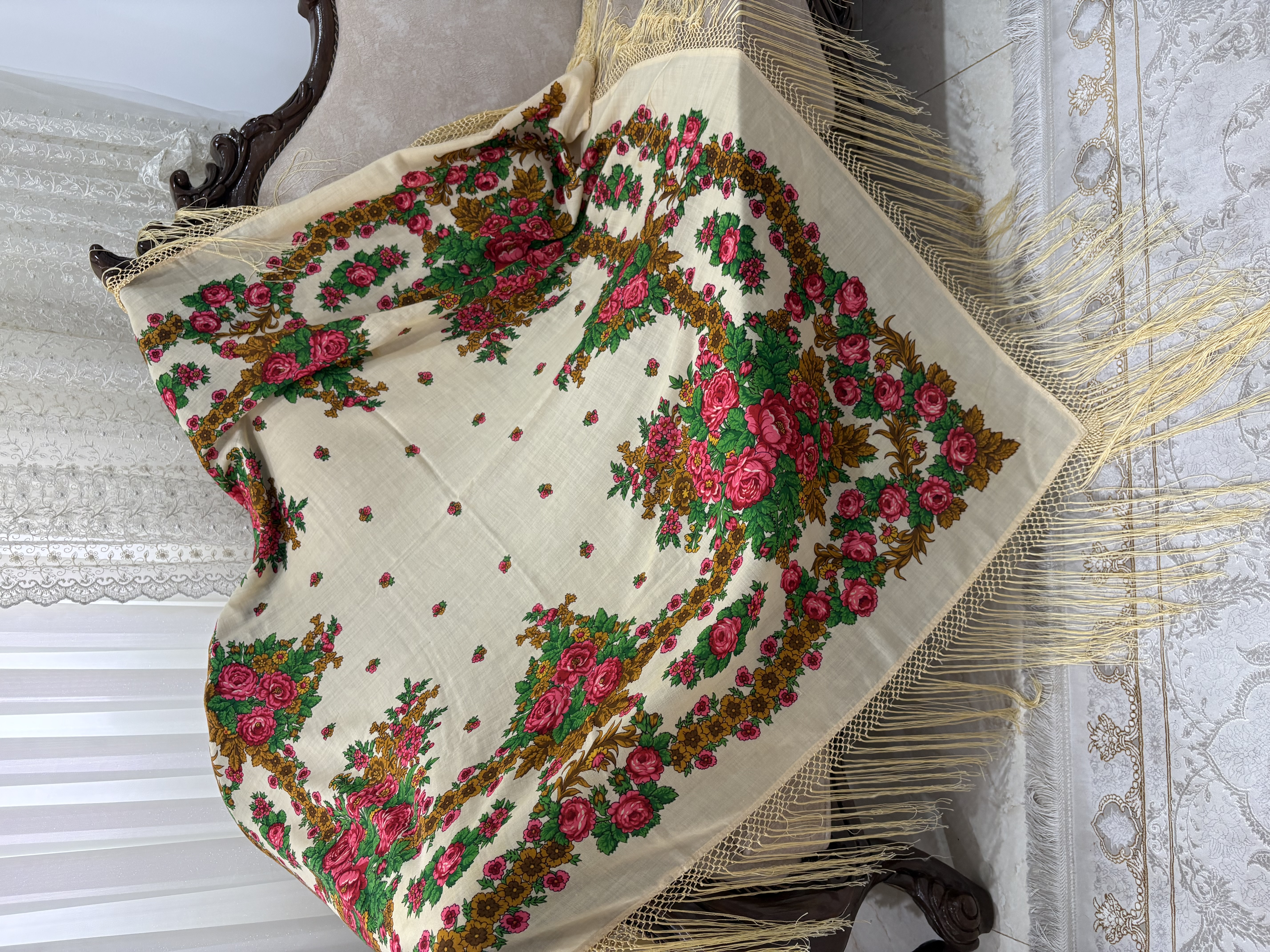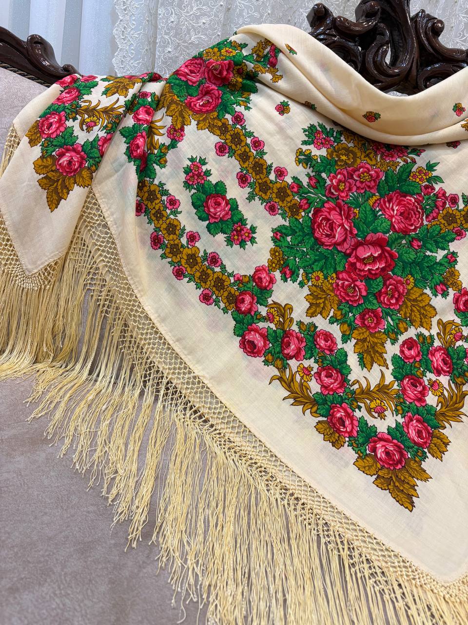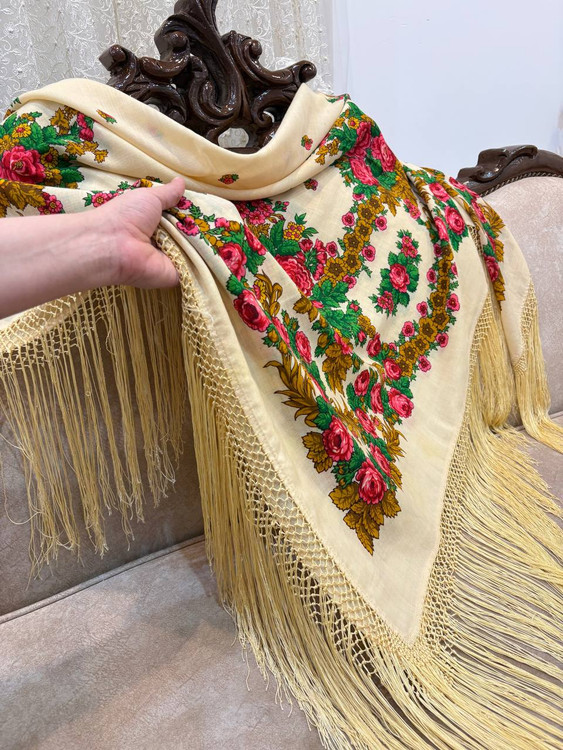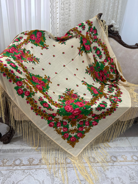 چارقد گرانبهای عروس ترکمن پشمی اصل رنگ: شیری (کرم روشن) قدمت: بیش از ۷۰ سال وضعیت: نو و سالم، بدون پارگی یا آسیب: ۱