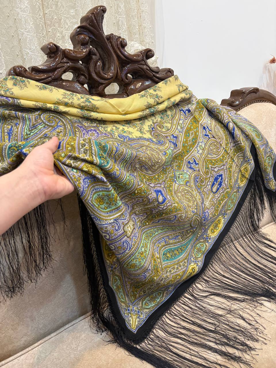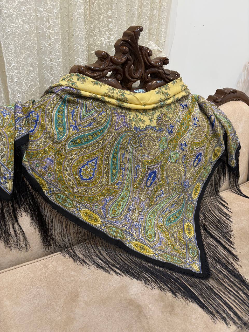 چارقدی شیک با رنگ های ملیح و دلنشین طرح ریز چشمنواز، با پارچهای لطیف و ایستایی زیبا؛ مناسب استفاده روزمره و استایلهای رسمی💚✨