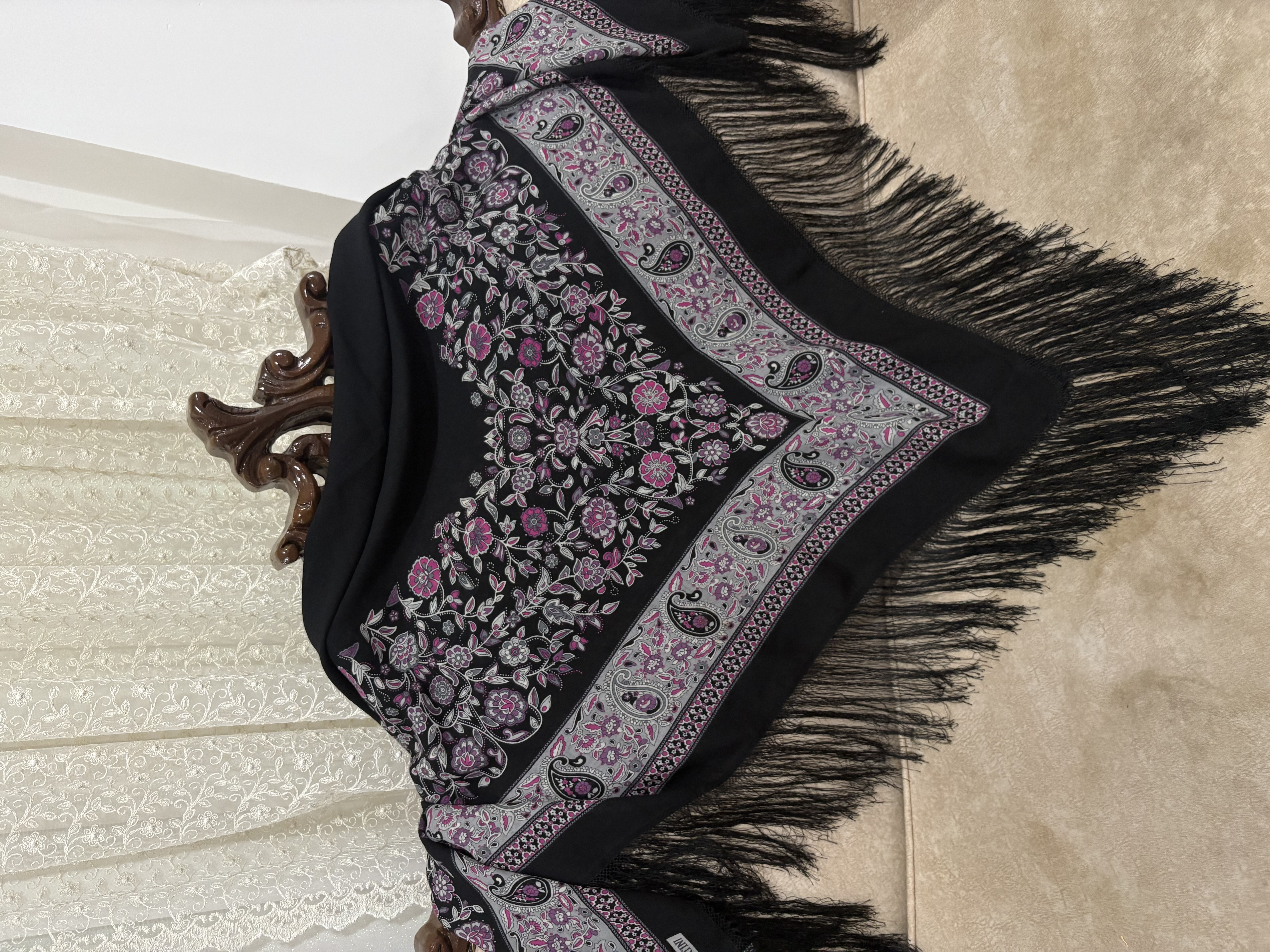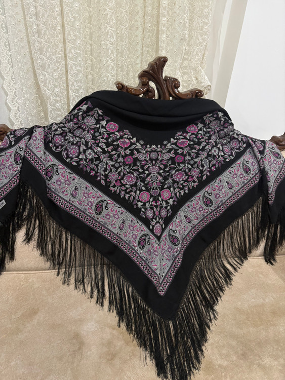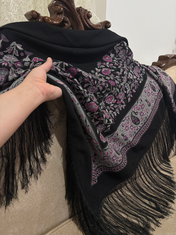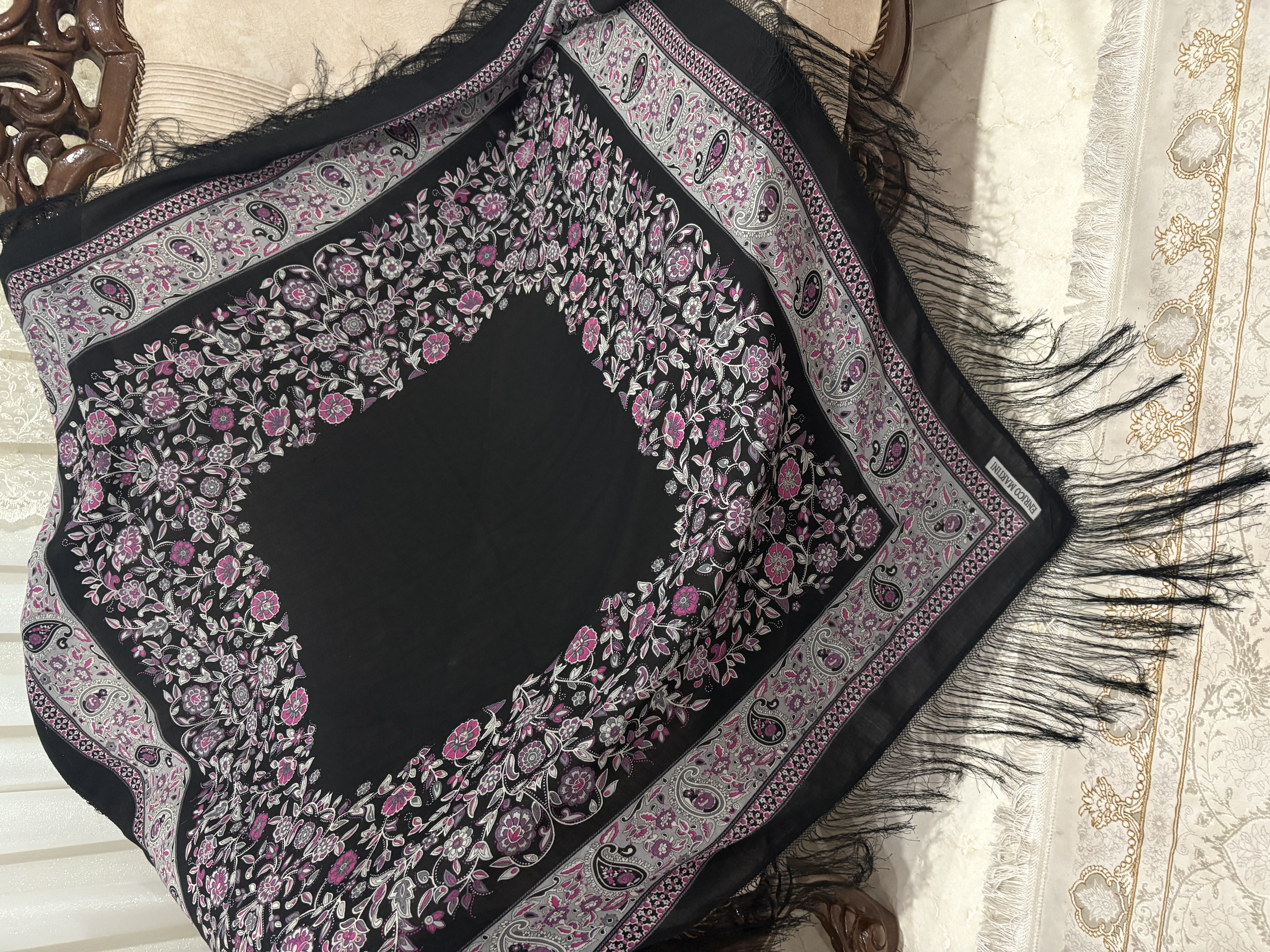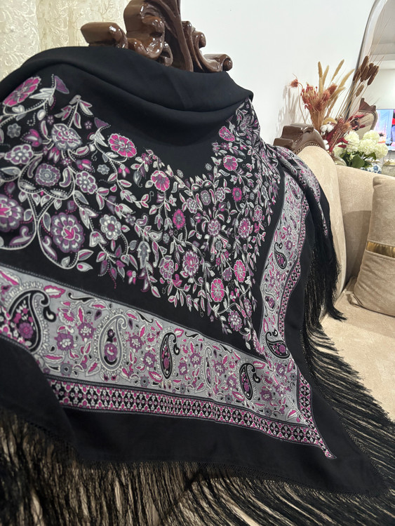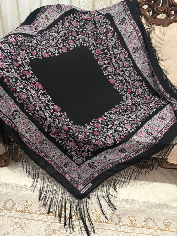 .جنس،ایتالیایی، ریشه هشت گره بسیار پرپشت، رنگ مشکی پررنگ، اصلا بورنیست، حاشیه گلهای زیبا و دلنشین بنفش یاسی: 1