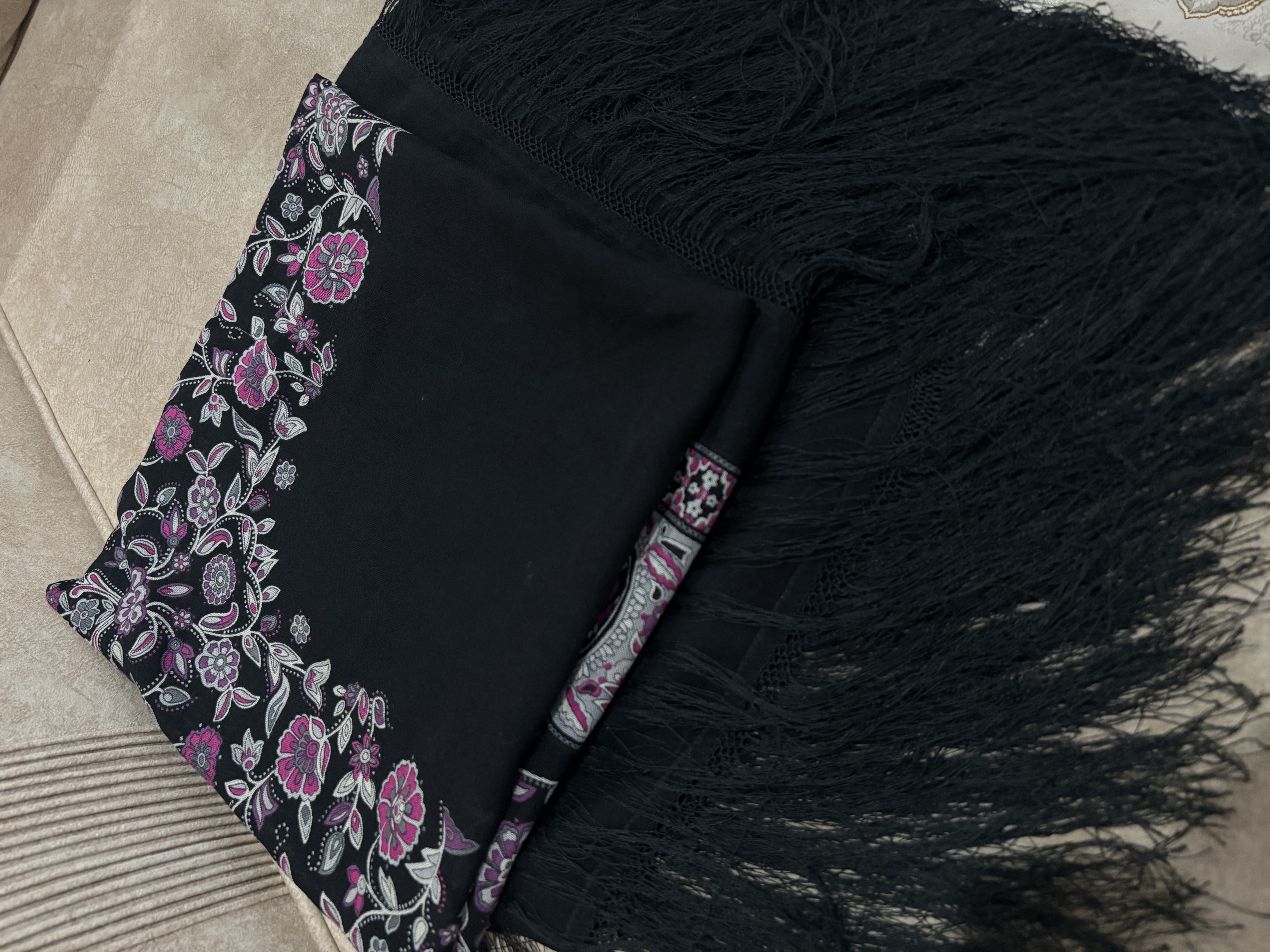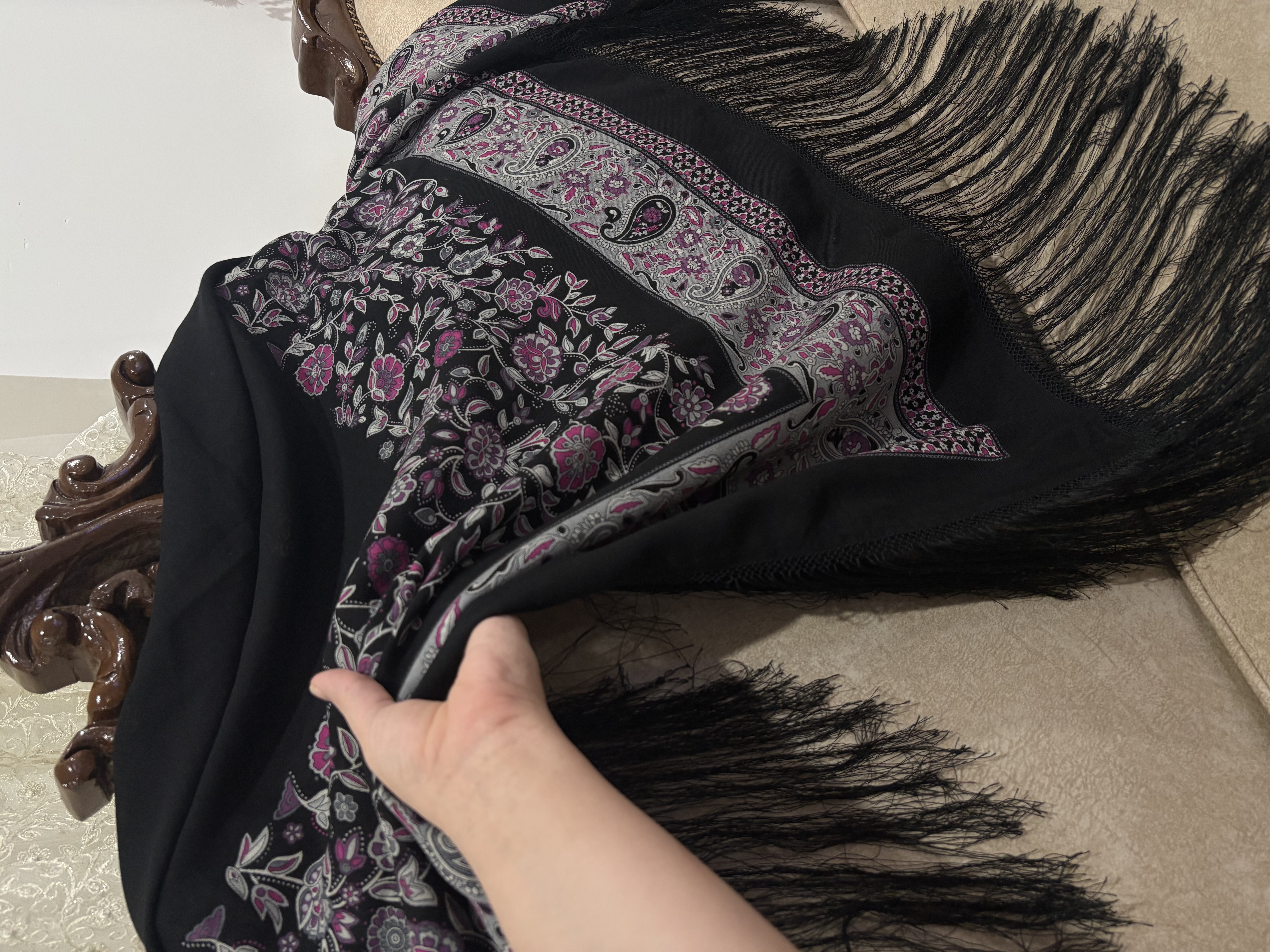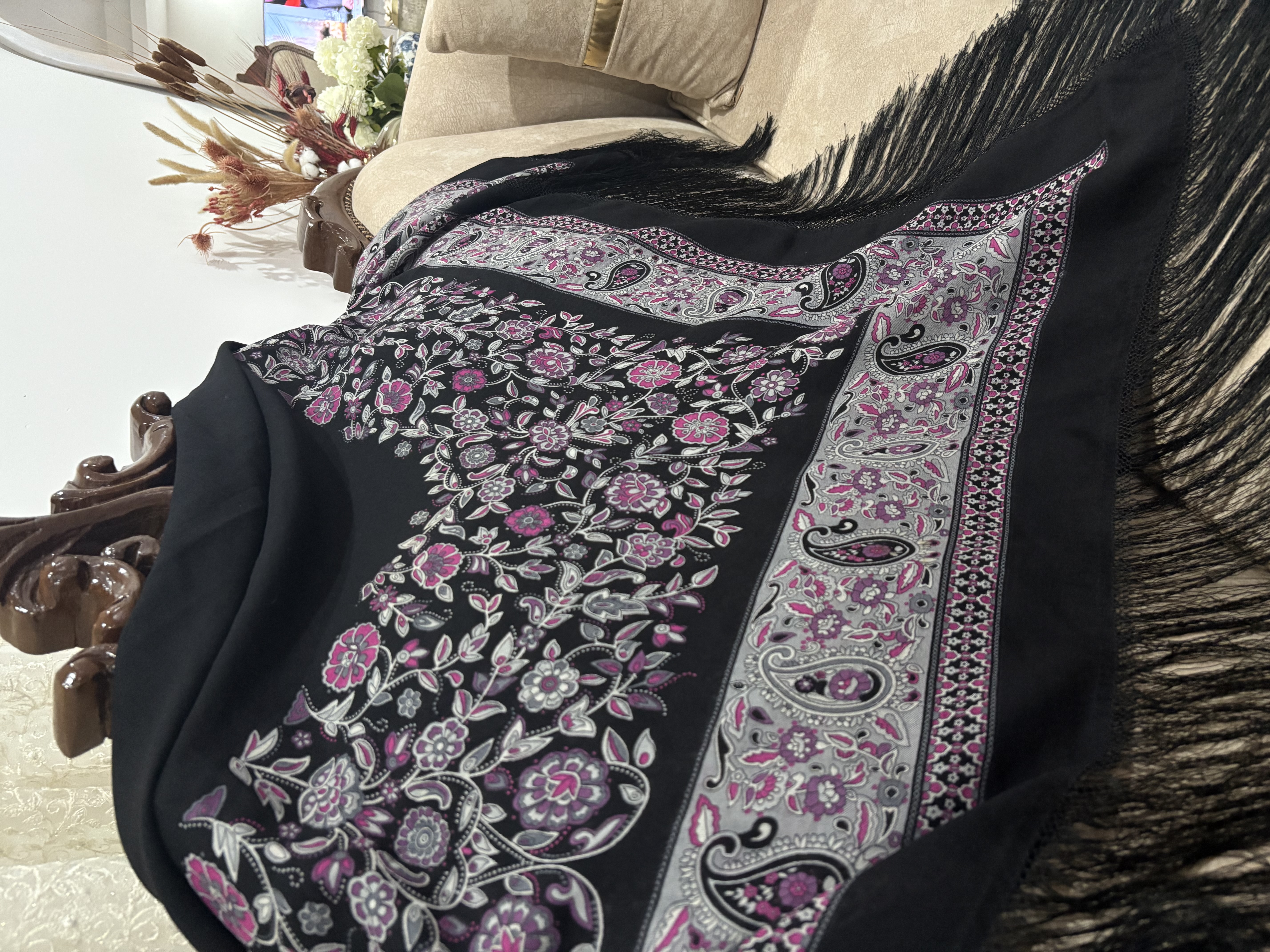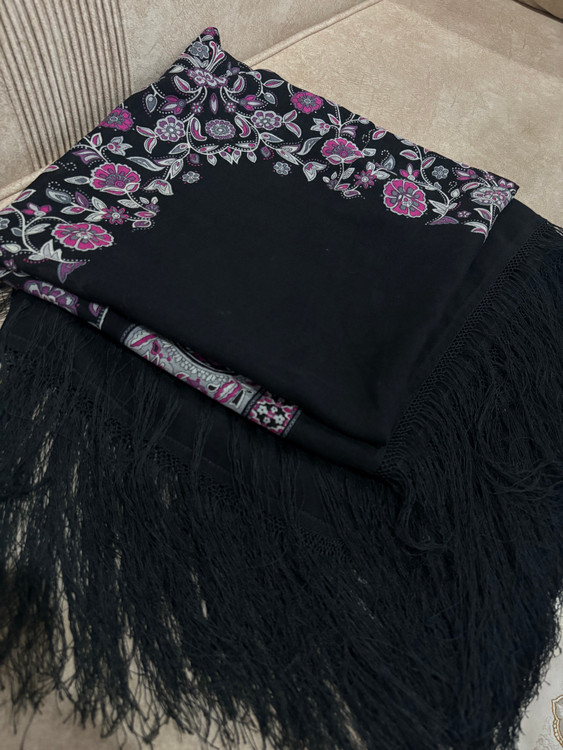 .جنس،ایتالیایی، ریشه هشت گره بسیار پرپشت، رنگ مشکی پررنگ، اصلا بورنیست، حاشیه گلهای زیبا و دلنشین بنفش یاسی: 1