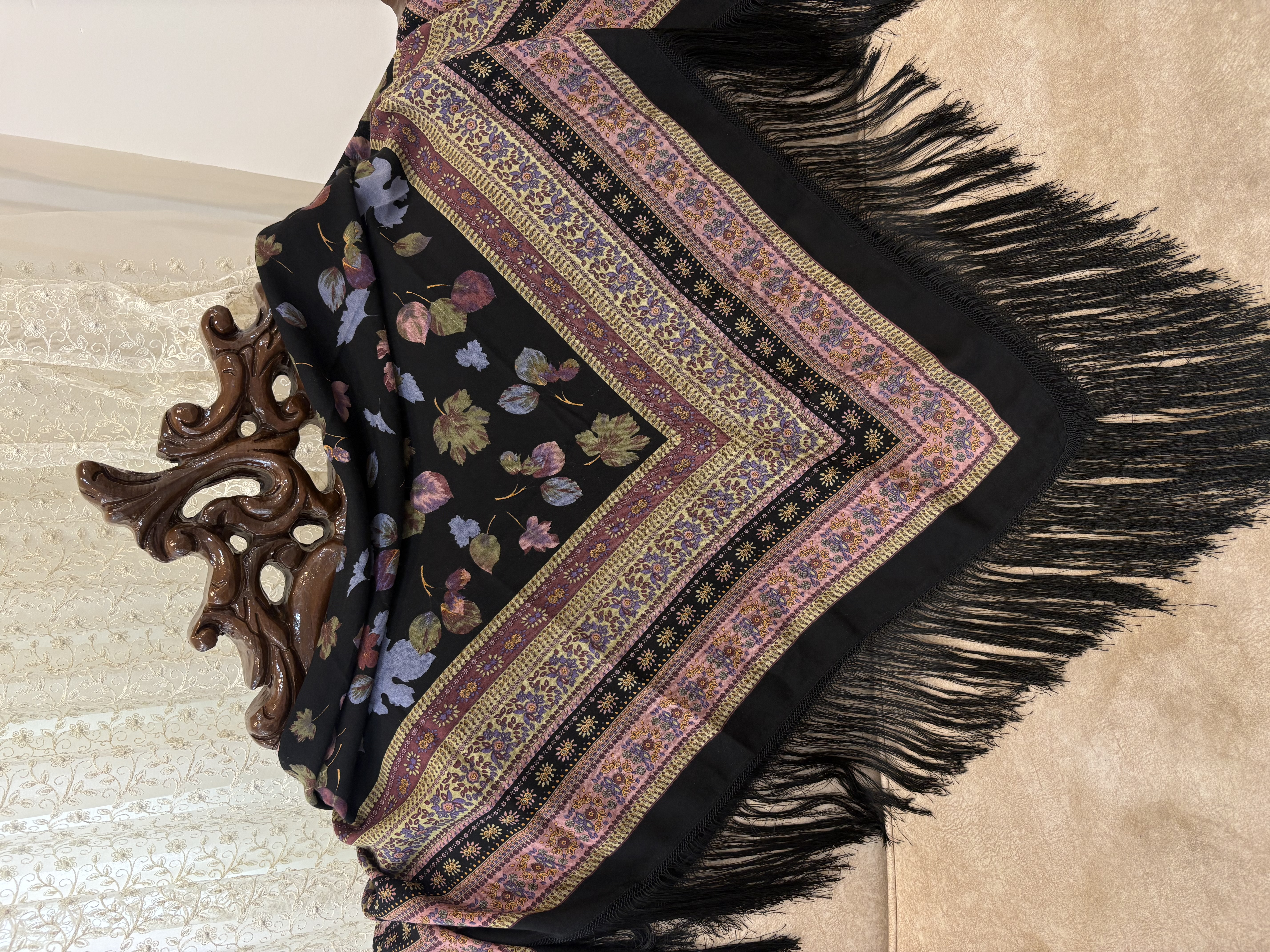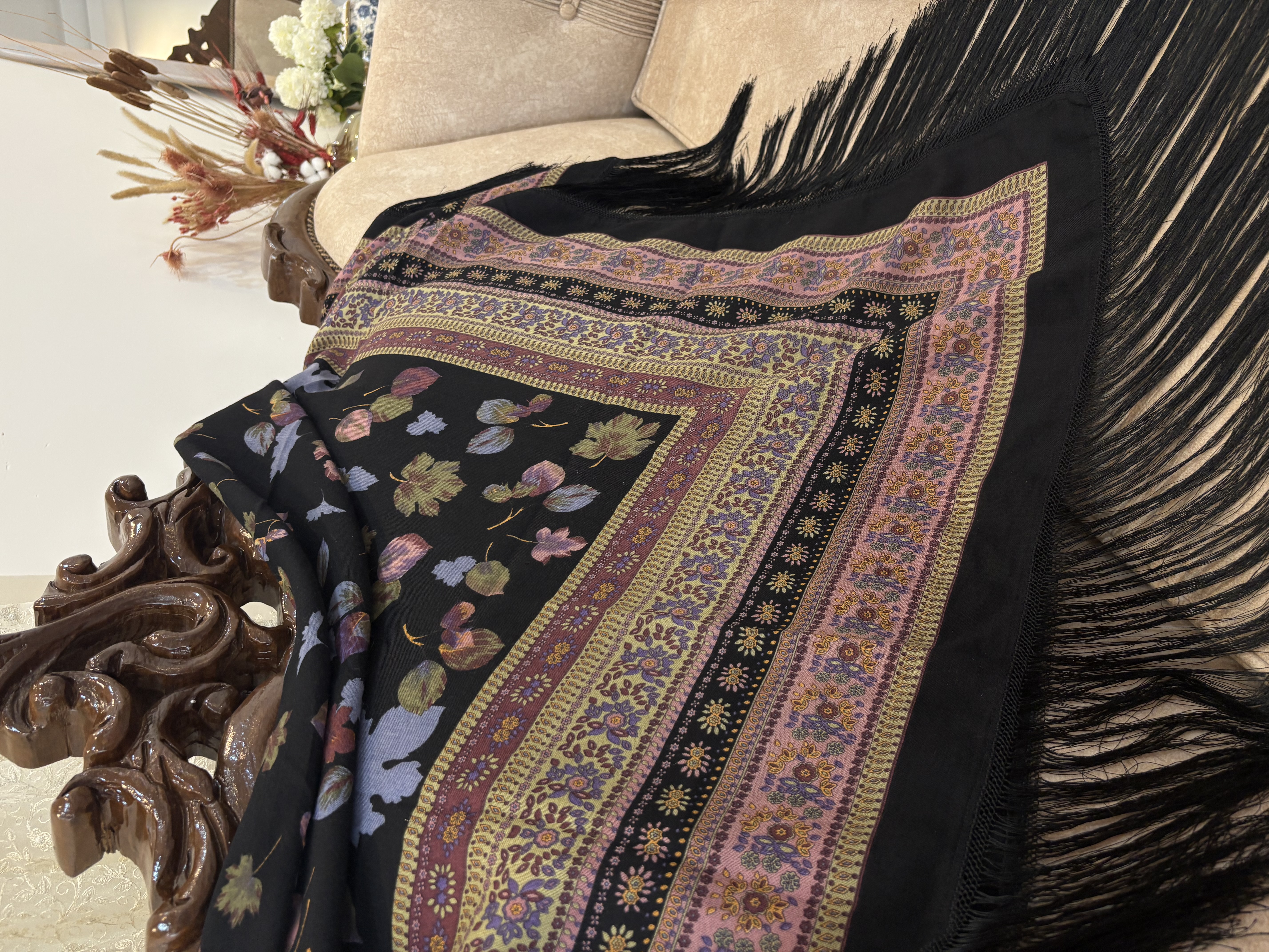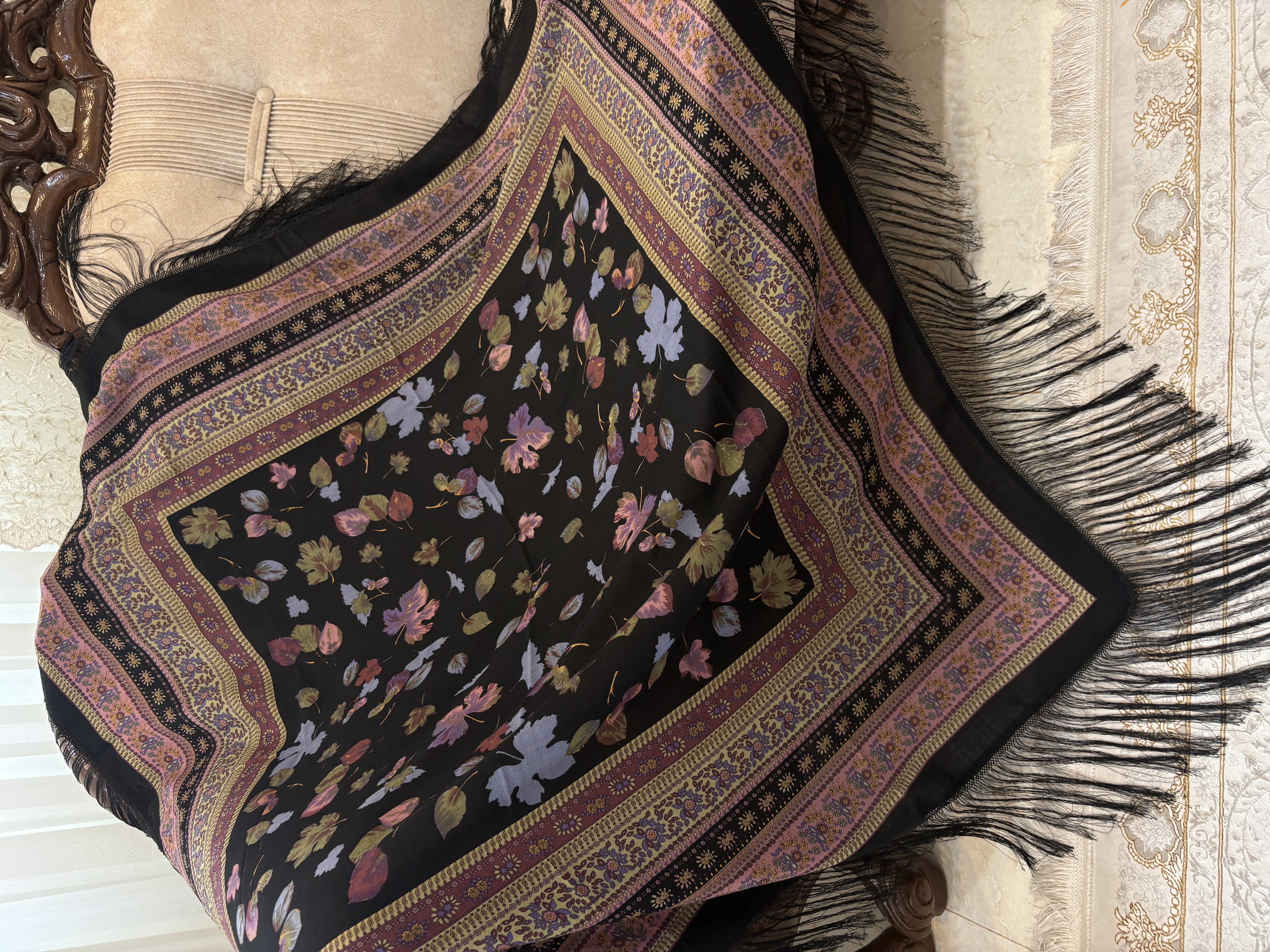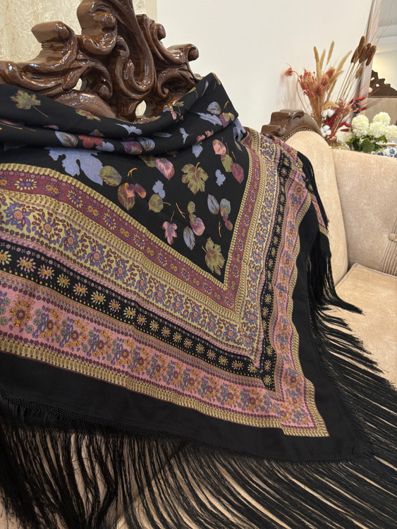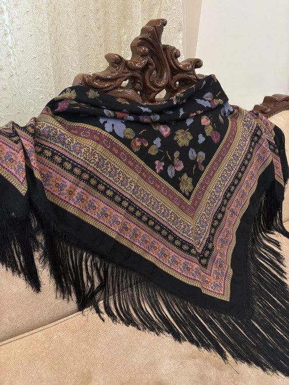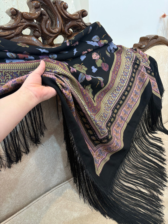 ایتالیایی،مشکیکمیاب، با گلهای شاد خوشرنگ، یه چارقد همه جاپوش،مجلسی،درجه یک،با تراکم عالی،ریزش دار.