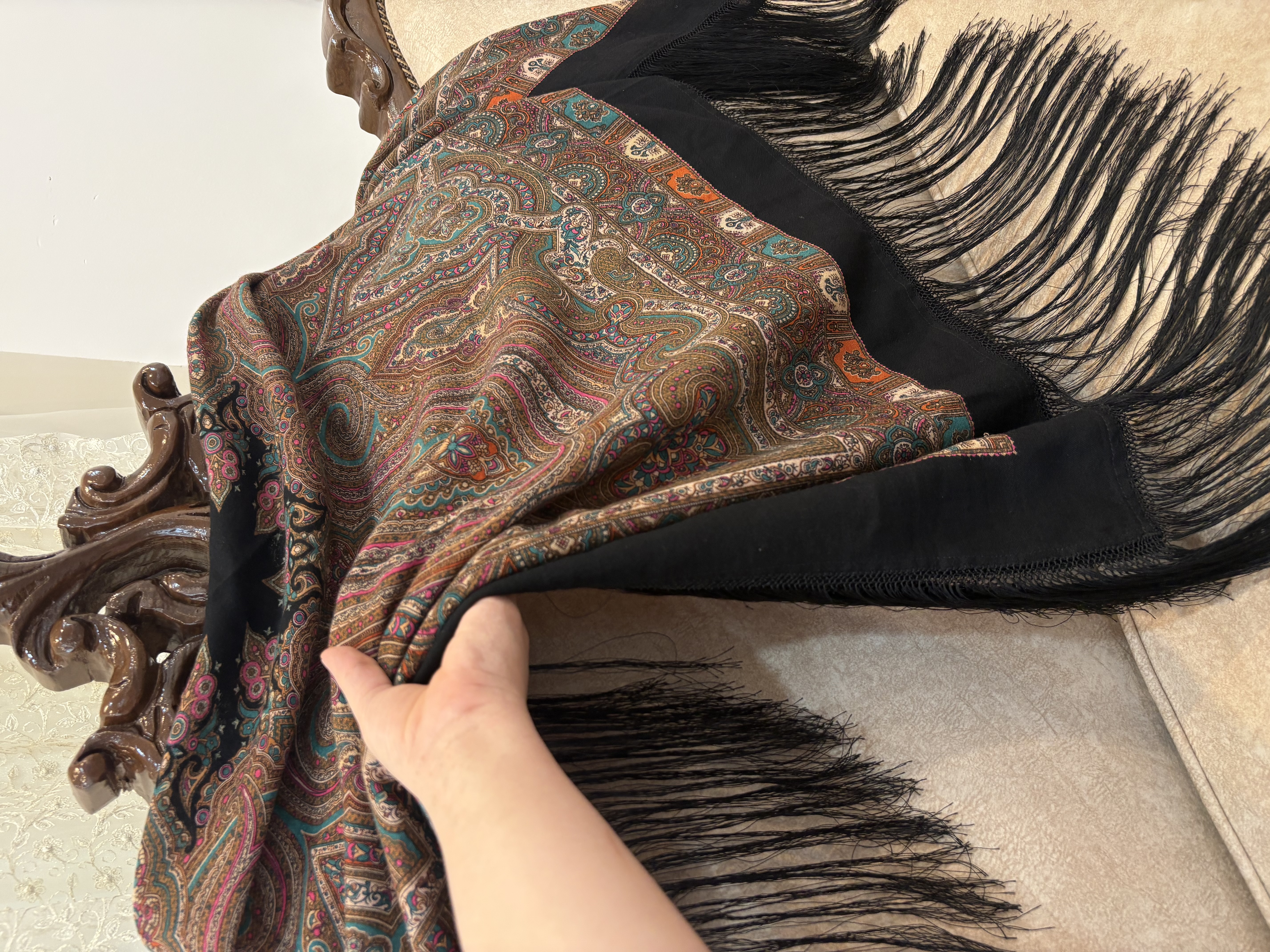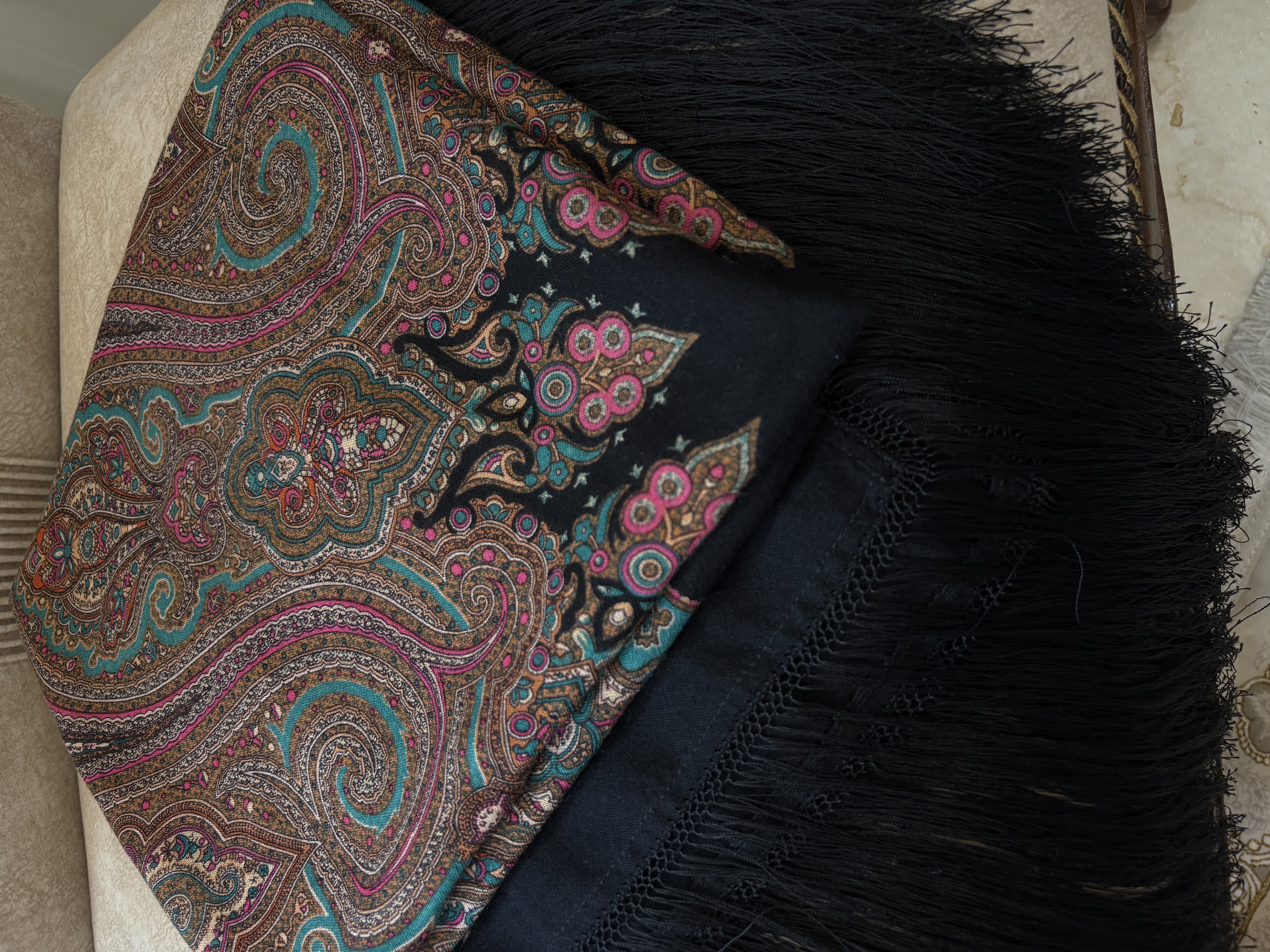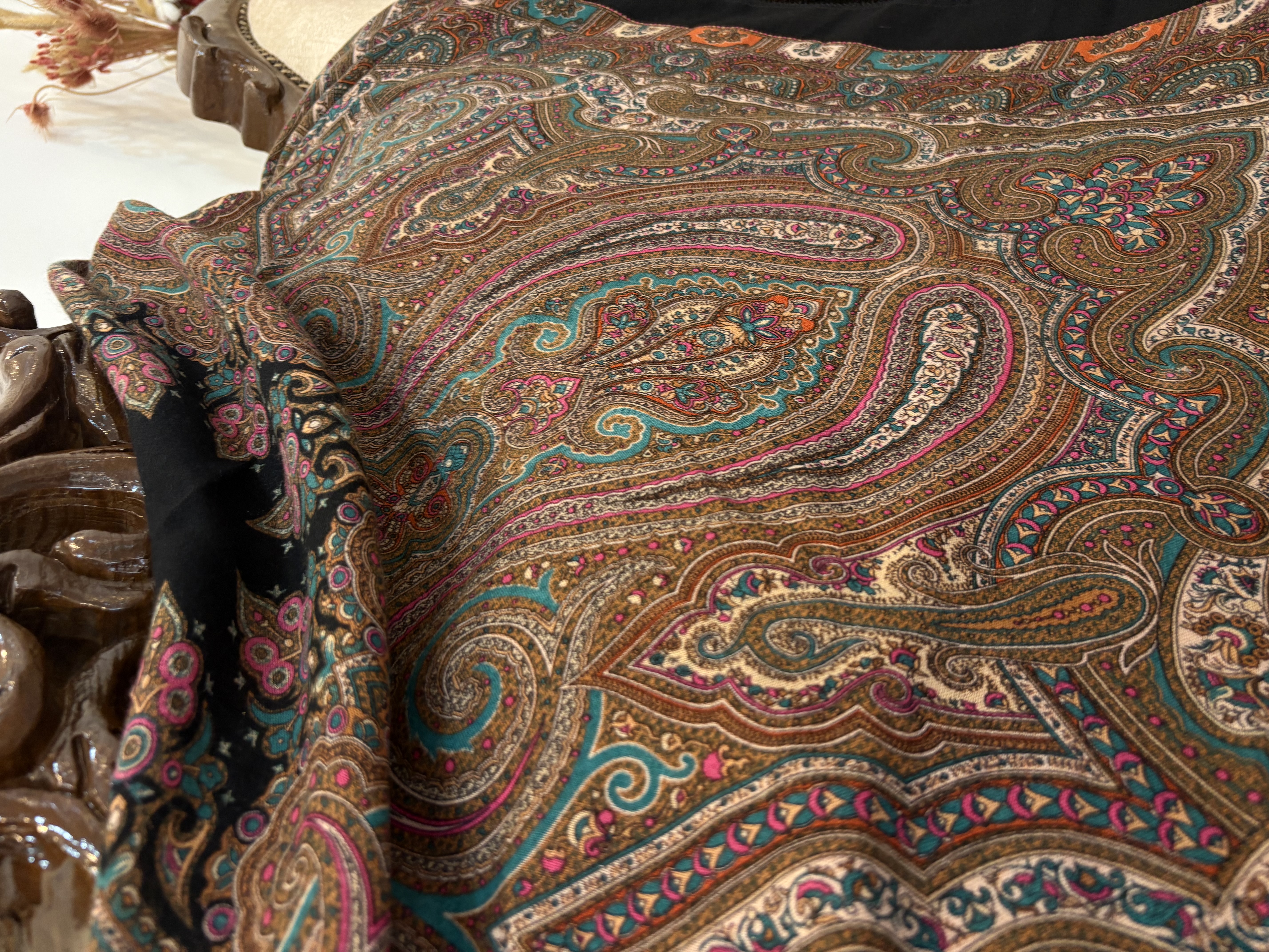 📏 ابعاد: بزرگ (معمولاً ۱۴۰×۱۴۰ سانتیمتر) 🧵 جنس: پارچه لوکس و لطیف (نخ/ابریشم یا مشابه) 🎨 طرح: گل اسفندی شیک و برجسته 💫 ویژگی: ایستایی خوب، رنگهای زنده 👗 کاربرد: مناسب مجالس و استایل مجلسی/روزمره خاص 🧼 نگهداری: قابل شستوشوی ملایم: 140