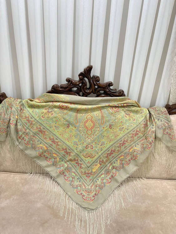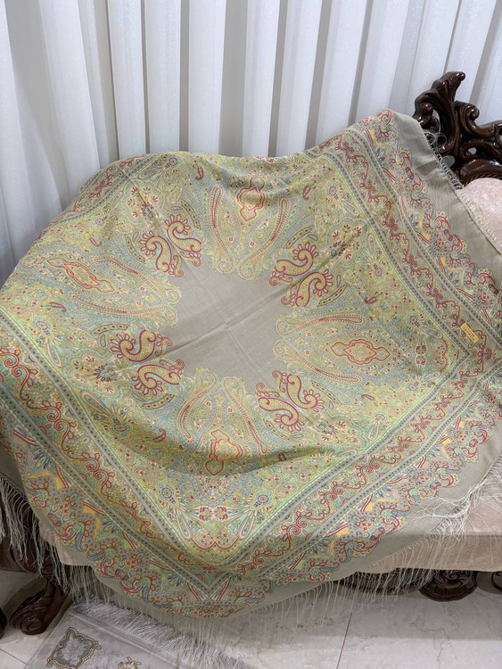 چارقد ایتالیایی طرح ترمه سبز فیلی – ریشهدار لوکس