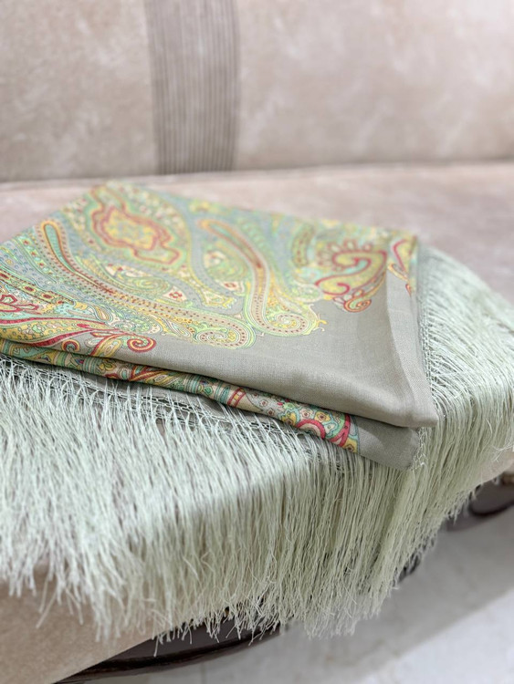 خرید چارقد ایتالیایی طرح ترمه سبز فیلی با ریشههای بلند، پارچه لطیف و کیفیت بالا. قیمت مناسب چارقد زنانه وارداتی، شیک و مجلسی مناسب استایل کلاسیک و رسمی. خرید آنلاین چارقد ایتالیایی اصل با ارسال سریع