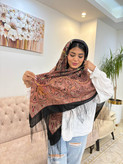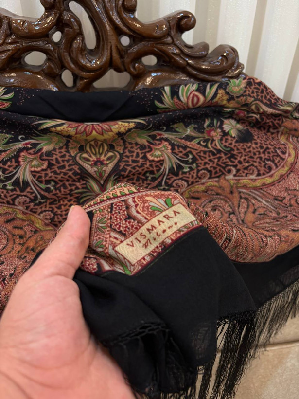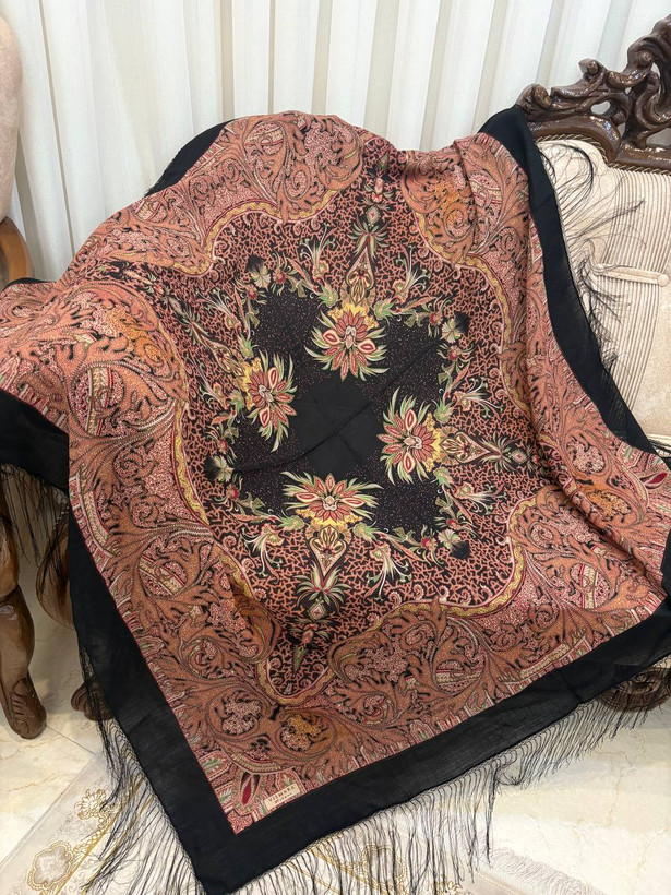نوع: چارقد ایتالیایی طرح: کلاسیک / سنتیحاشیه: ریشهدار مشکی جنس: پارچه لطیف و سبک مناسب: استایل مجلسی، رسمی و خاص ویژگی: ایستایی زیبا، طرح لوکس و ماندگار: حاشیه: ریشهدار مشکی جنس: پارچه لطیف و سبک مناسب: استایل مجلسی، رسمی و خاص ویژگی: ایستایی زیبا، طرح لوکس و ماندگار
