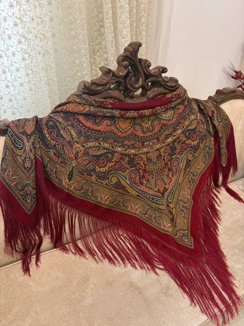 نوع: چارقد زنانه طرح: بتهجقه کلاسیک رنگ غالب: زرشکی با ترکیب رنگهای گرم سبک: کلاسیک / مجلسی حاشیه: ریشهدار مناسب برای: مجالس، مهمانی و استفاده روزمره شیک کشور طرح: ایتالیا
