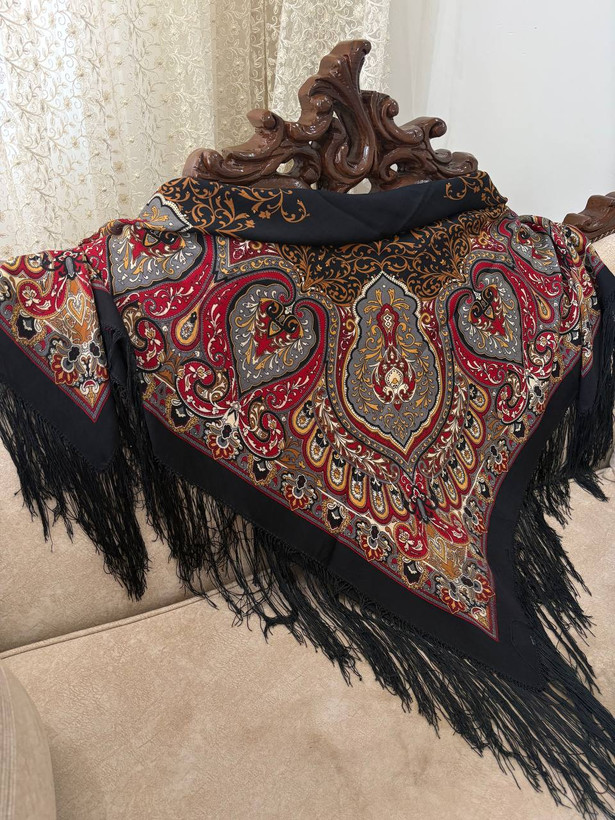 چارقدی شیک با نقوش کلاسیک و رنگبندی اصیل، مناسب استایل مجلسی و روزمره. جنس لطیف با ایستایی مناسب که روی سر فرم زیبایی میگیرد و سر نمیخورد. دارای ریشهدوزی ظریف در لبهها.