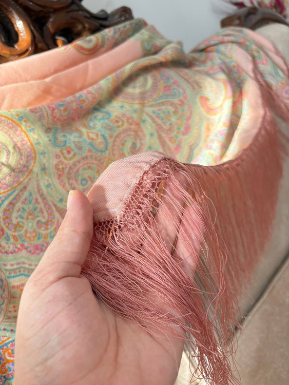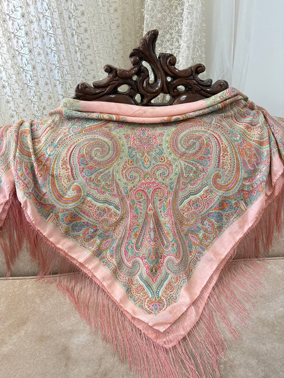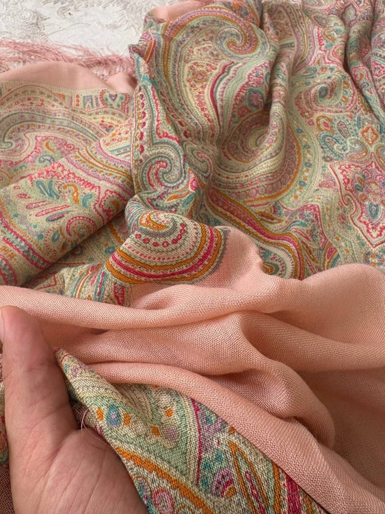 جنس: پارچه ایتالیایی لطیف و باکیفیت ایستایی: بسیار عالی، خوشفرم روی سر بدون لیز خوردن طرح: بتهجقه کلاسیک با رنگبندی ملایم لبهها: ریشهدار ظریف مناسب: استفاده روزمره و مجلسی: شستشو با دست و آب سرد استفاده از شوینده ملایم عدم چنگ زدن و خشککن اتوکشی با حرارت کم از پشت پارچه