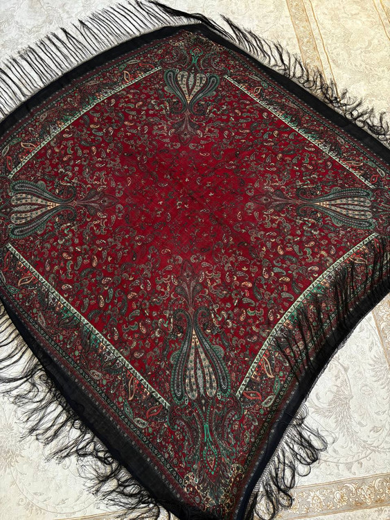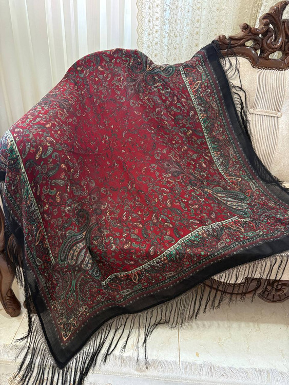 چارقدی لوکس با زمینه قرمز عمیق و نقوش ظریف الهامگرفته از هنر اصیل اروپایی. جنس لطیف و سبک آن باعث ایستایی زیبا روی سر میشود و بدون لیز خوردن، فرم خود را حفظ میکند. حاشیه ریشهدار، جلوهای خاص و چشمنواز به استایل شما میدهد.