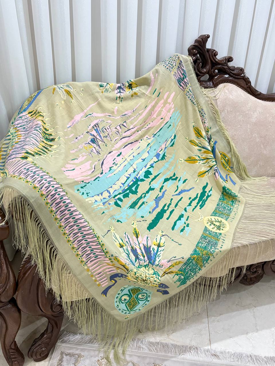 وارداتی ایتالیا جنس: نخ لطیف و سبک ابعاد: قواره بزرگ حاشیه: ریشهدار نرم مناسب: چهارفصل: .