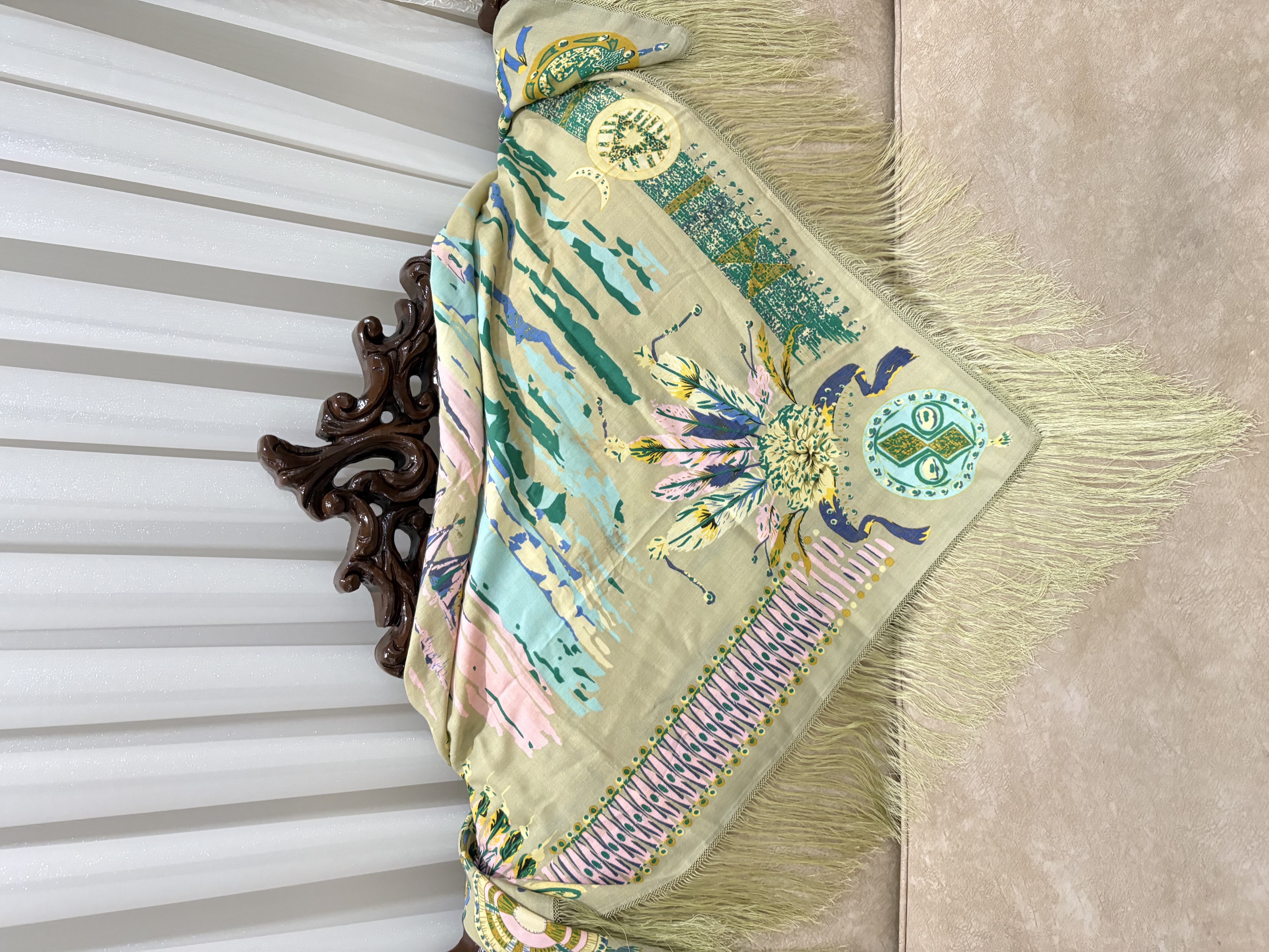 وارداتی ایتالیا جنس: نخ لطیف و سبک ابعاد: قواره بزرگ حاشیه: ریشهدار نرم مناسب: چهارفصل