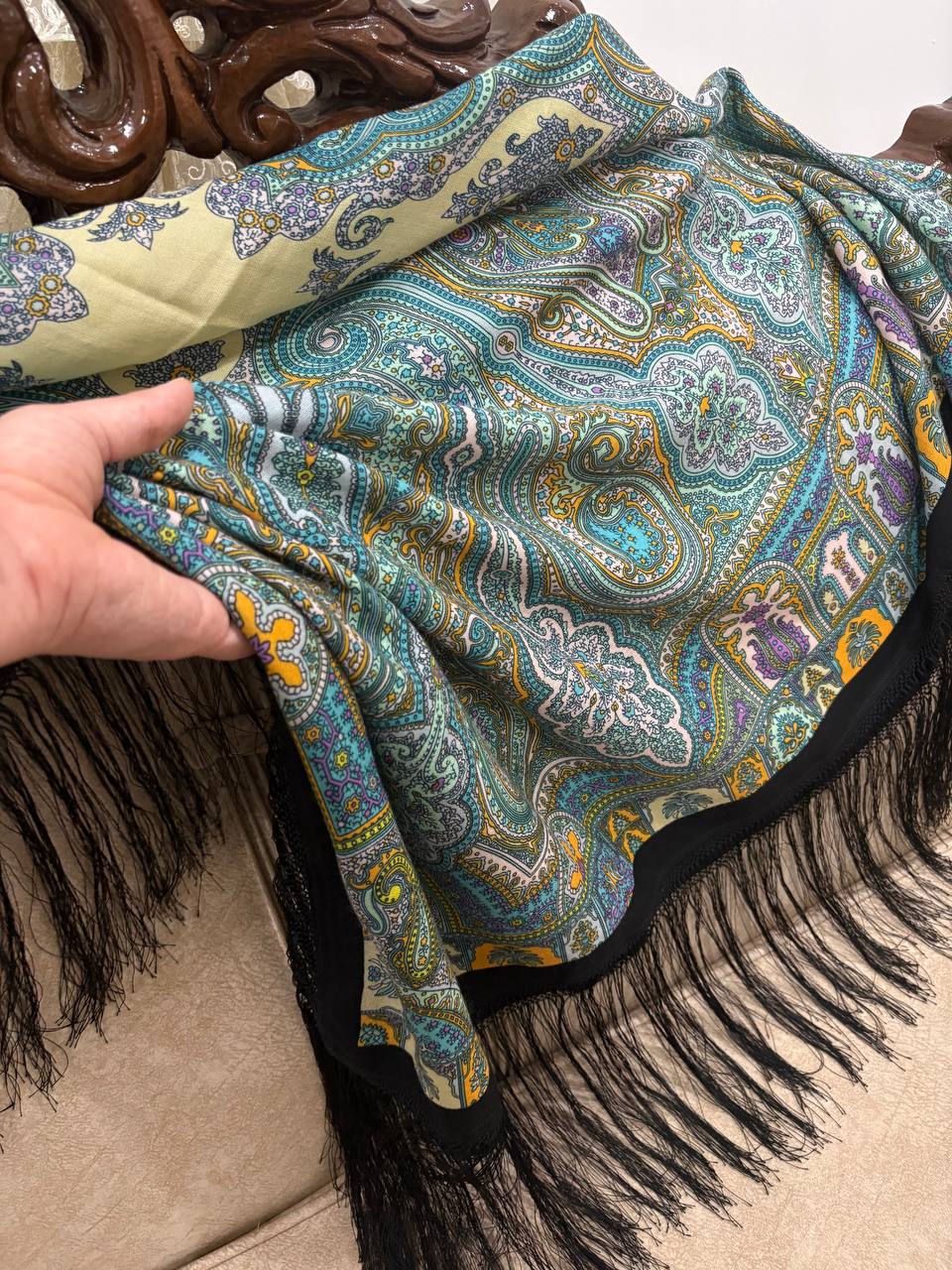 نام محصول: چارقد آینسا مبدأ پارچه: ایتالیا جنس: پارچه لطیف و باکیفیت با ایستایی عالی طرح: بتهجقه کلاسیک الهامگرفته از نقوش اصیل شرقی رنگ غالب: فیروزهای، سبز یشمی با جزئیات طلایی و بنفش حاشیه: ریشهدار مشکی دستدوز کاربرد: مجلسی، سنتی، استایل خاص و لوکس: .